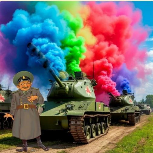 Когда между танками расцвели цветные дымы, то наши военные обалдели, дипломаты решили, что так и надо, иностранные гости пришли в восторг, а особист выматеревшись, сказал, что теперь непрокрас точно не заметят, пошёл убивать прапорщика.