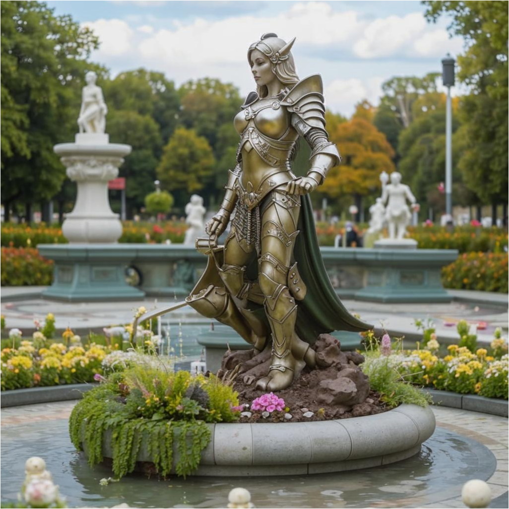 Картинки от нейросетей. Статуи, клумбы, фонтаны, аллеи, мосты