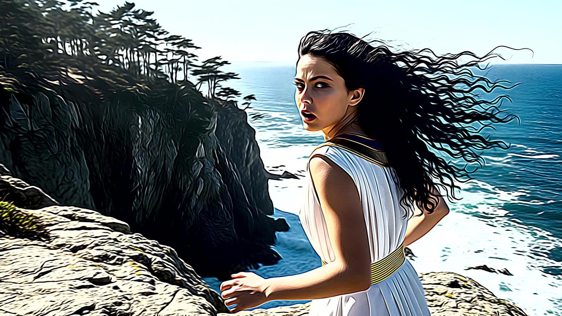 Амфитея прыгает в море со скалы...