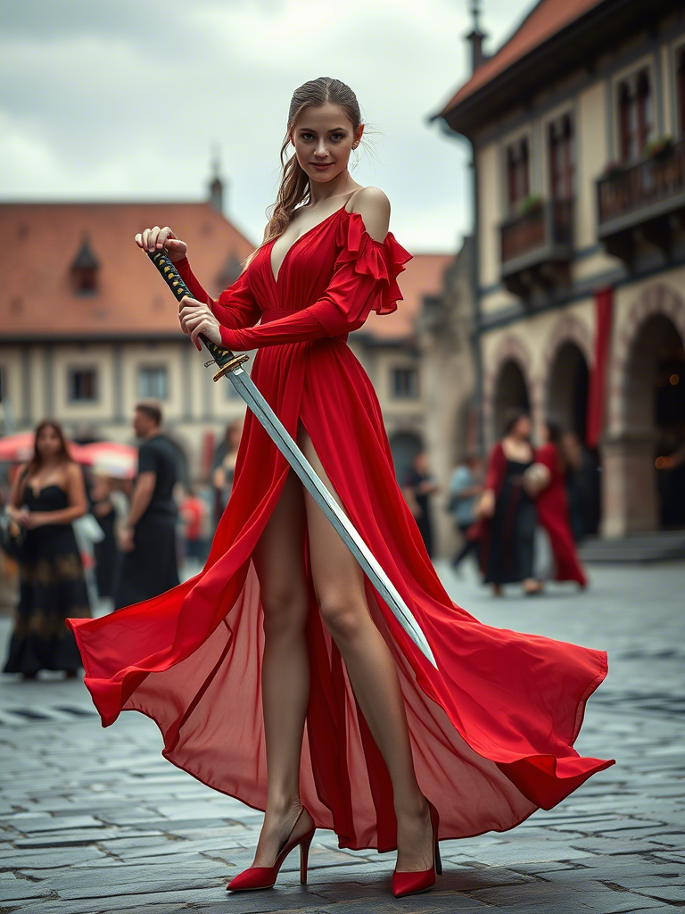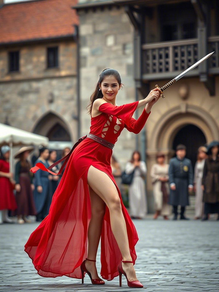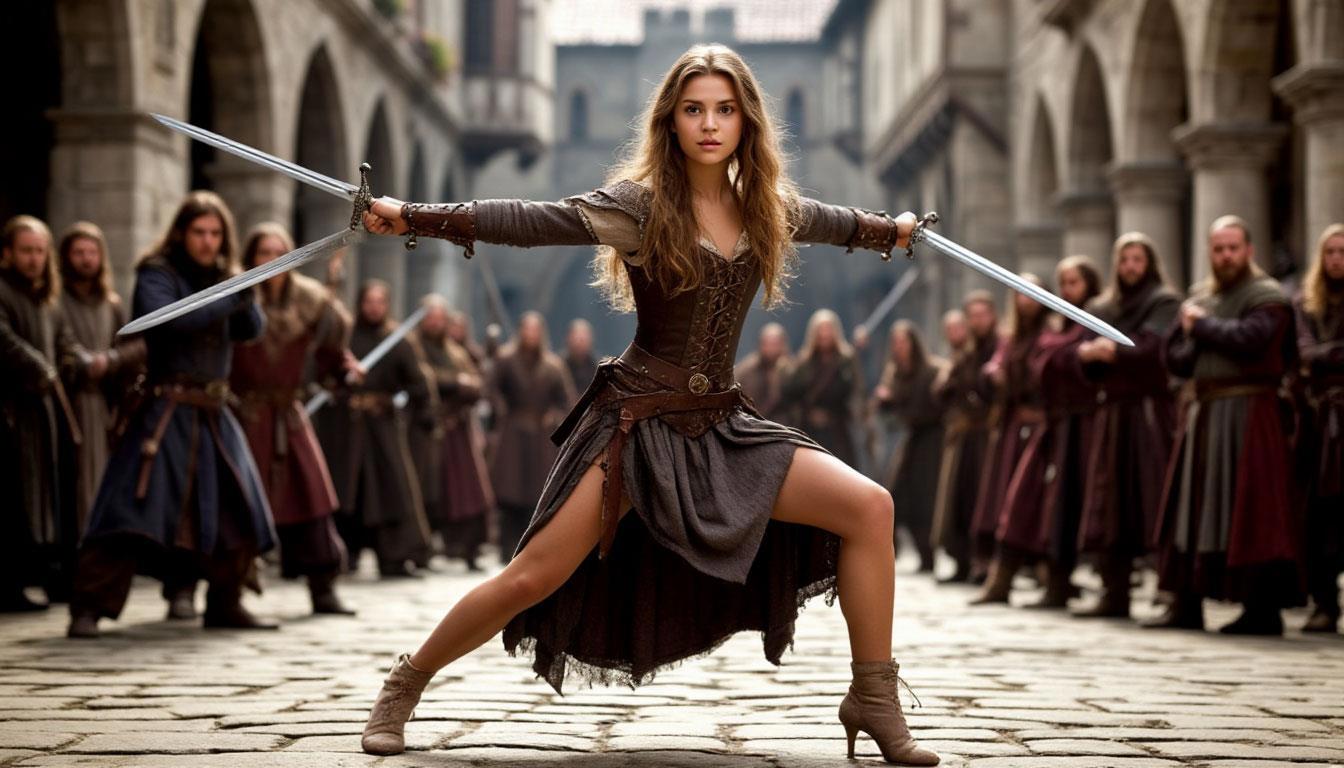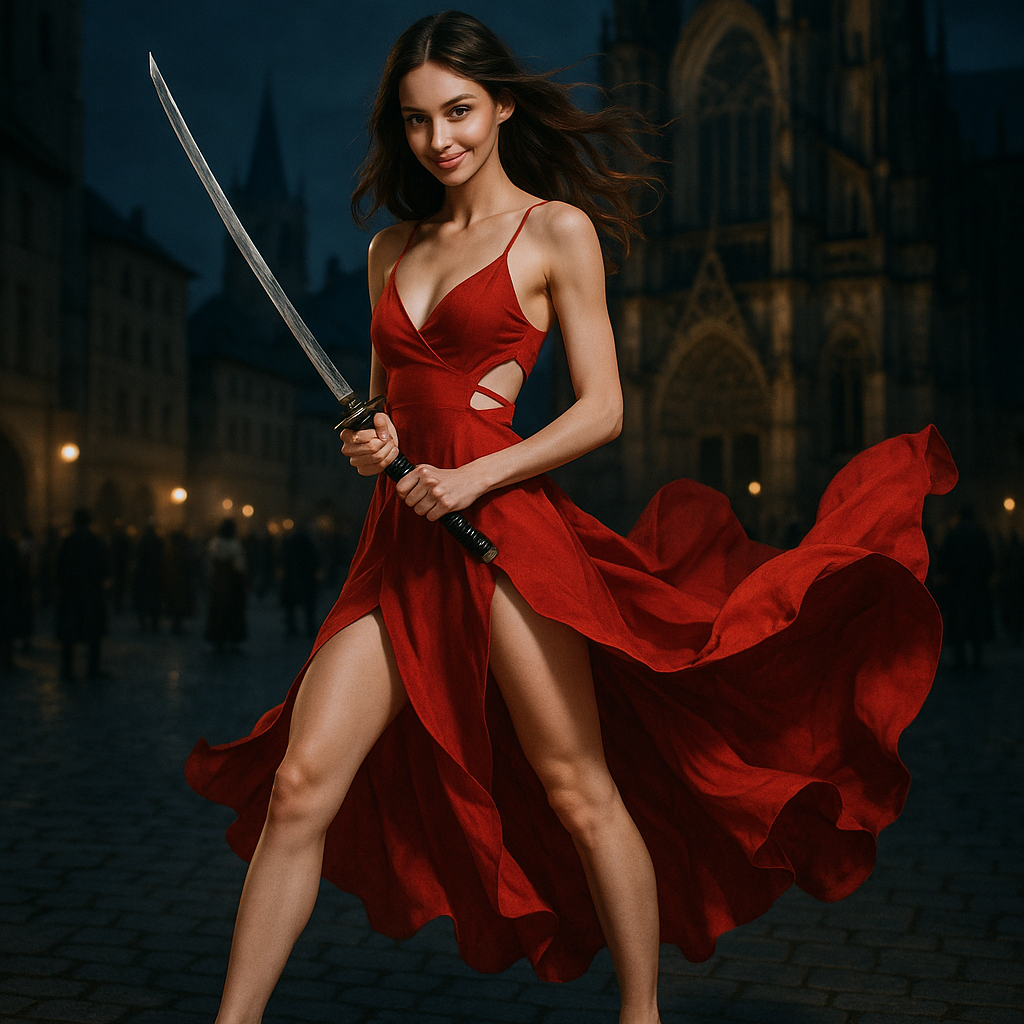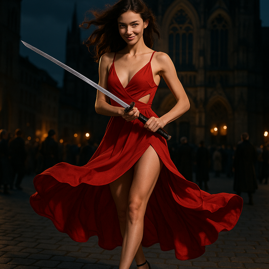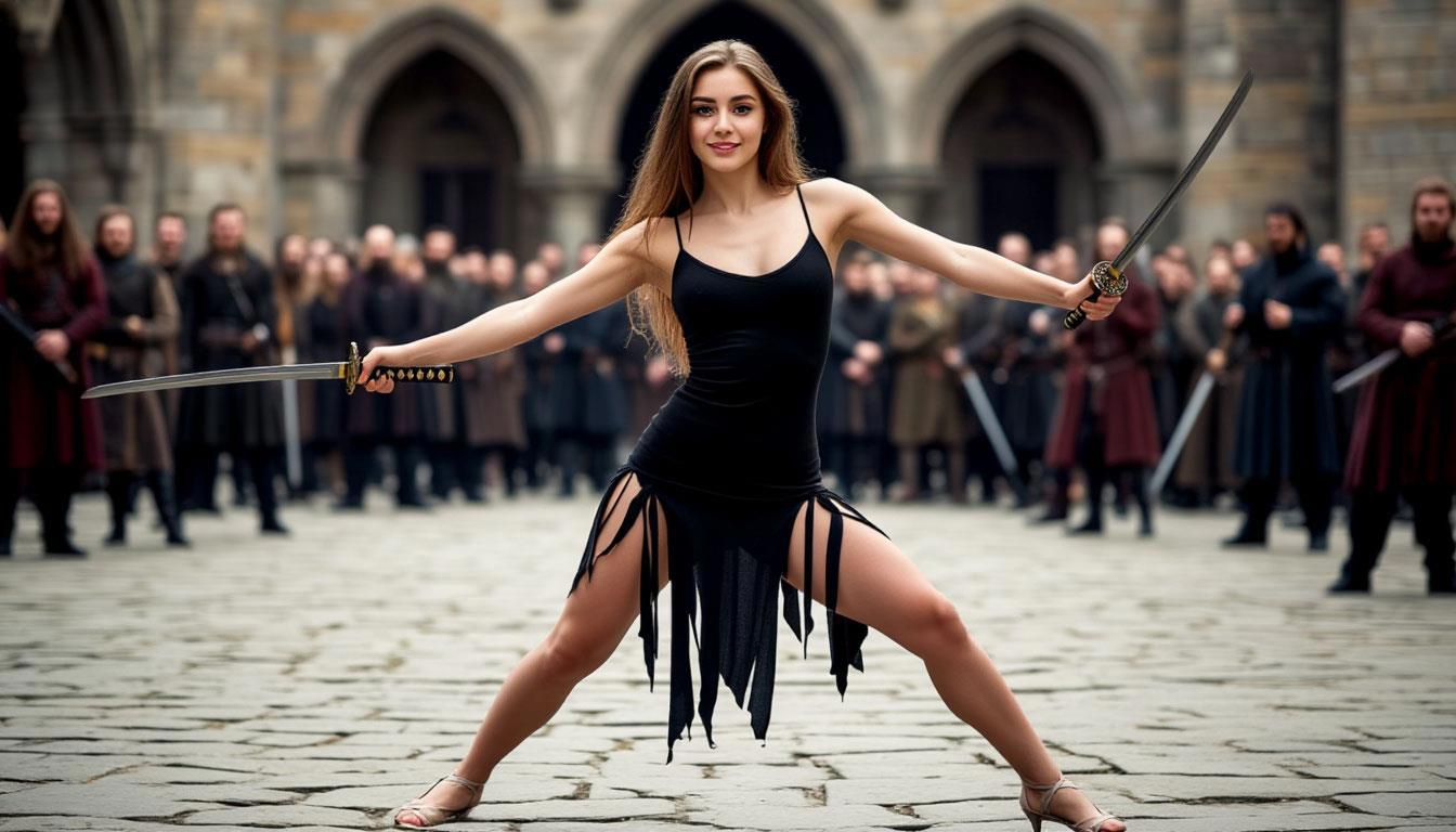 Картинки от нейросетей. Девушки. Танец с саблями, ну почти...