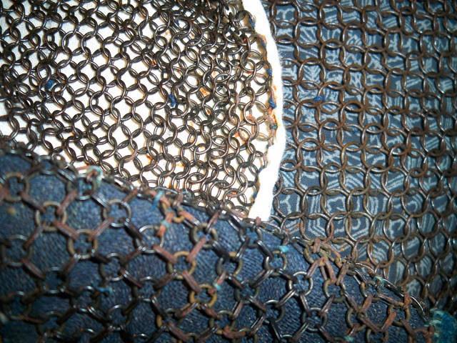 Многократно упростить и ускорить процесс изготовления кольчуги (а он в отдельных случаях занимал годы) можно было, используя кольца, просто "сведенные встык". Защитные свойства кольчуги при этом не уменьшались, но она становилась очень недолговечной. При движениях воина кольца легко разгибались и выпадали. Для того чтобы доспех не рассыпался в мгновение ока, плетение приходилось нашивать на обычную ткань. А еще лучше - покрывать ею с обеих сторон. Подобный метод изготовления кольчуг был достаточно распространен в Азии. Арабы сначала делали широкое полотно из обшитого тканью кольчужного плетения, и только потом кроили и сшивали его. Но метод, работавший в засушливых странах, почти не нашел применения в дождливой Европе, где смертельным врагом железа была ржавчина.