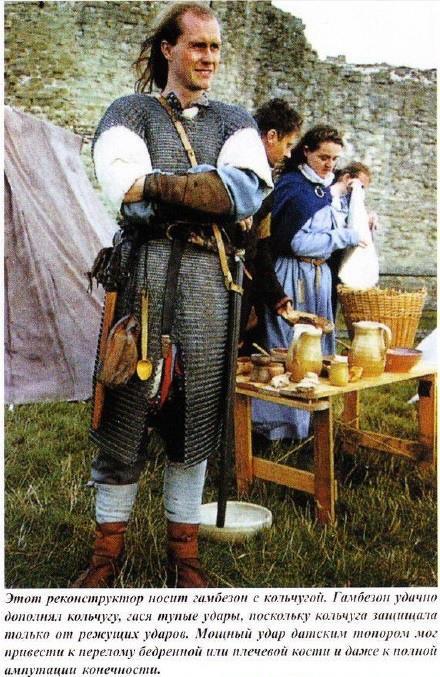 Под любые металлические гибкие доспехи всегда поддевали стёганную одежду, которая принимала на себя удары и не позволяла разорванным кольцам впиваться в тело. Рыцари надевали стеганую (прошитую из 8-30 слоев холста) куртку. Плечи и грудь в ней подбивали ватой. Заметный рельеф плеч и груди производил должное впечатление на дам, но не это было целью находчивых рыцарей. Эти "подушки" предназначались для распределения веса доспехов и амортизации ударов. Многослойная материя также могла остановить разящий удар, уже ослабленный железной броней. Повышению уровня защиты служила и подушка на груди. Если шелковый платок с трудом, но можно было разрубить в воздухе саблей. То "подушку" было не рассечь, с одного удара, никаким булатом даже на плахе. Так что престижный костюм XV века (дутая куртка-дублет с валиками на плечах, с узкими рукавами, а также похожие на чулки брюки - шоссы, приплюснутый головной убор - "таблетка", туфли без каблуков, но с длинными носами - и все это кричащих расцветок) - отнюдь не абсурдная мода, а шикарный стиль "милитари". Подобную одежду могли себе позволить далеко не все. Простые воины носили под кольчугой плотную двухслойную рубаху. Из сукна, кожи или льна набитую волосом, шерстью, пенькой, а то и даже сеном.