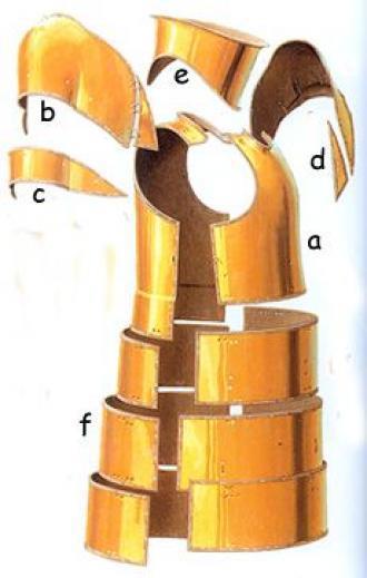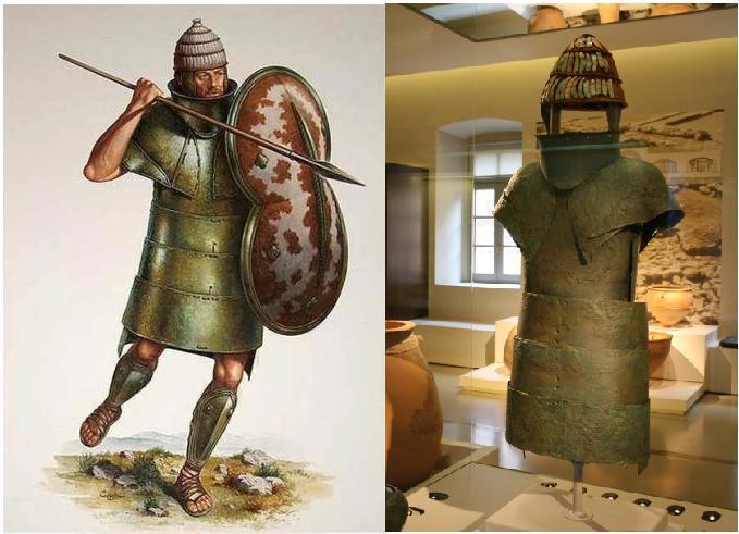 Правда из-за своих конструктивных особенностей такие доспехи были предназначен исключительно для пешего боя, в крайнем случае с колесницы. Сесть в них на лошадь было невозможно. К тому же подобные доспехи весили как и стоили. Безумно много. Вес доспеха из Дендры-12 мог доходить до 18 килограмм. И предназначался для воина весом не более 65 килограмм. И такие доспехи были недоступны большинству воинов. Порой заменявших их, в Греции и Риме, анатомическими кожаными доспехами. А анатомические бронзовые доспехи были доступны только военачальникам.