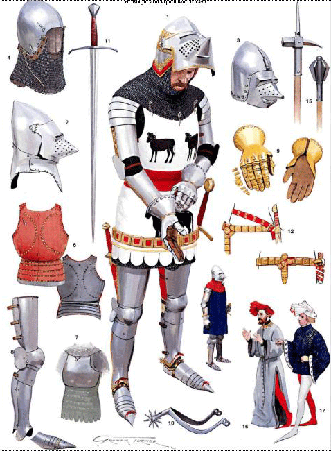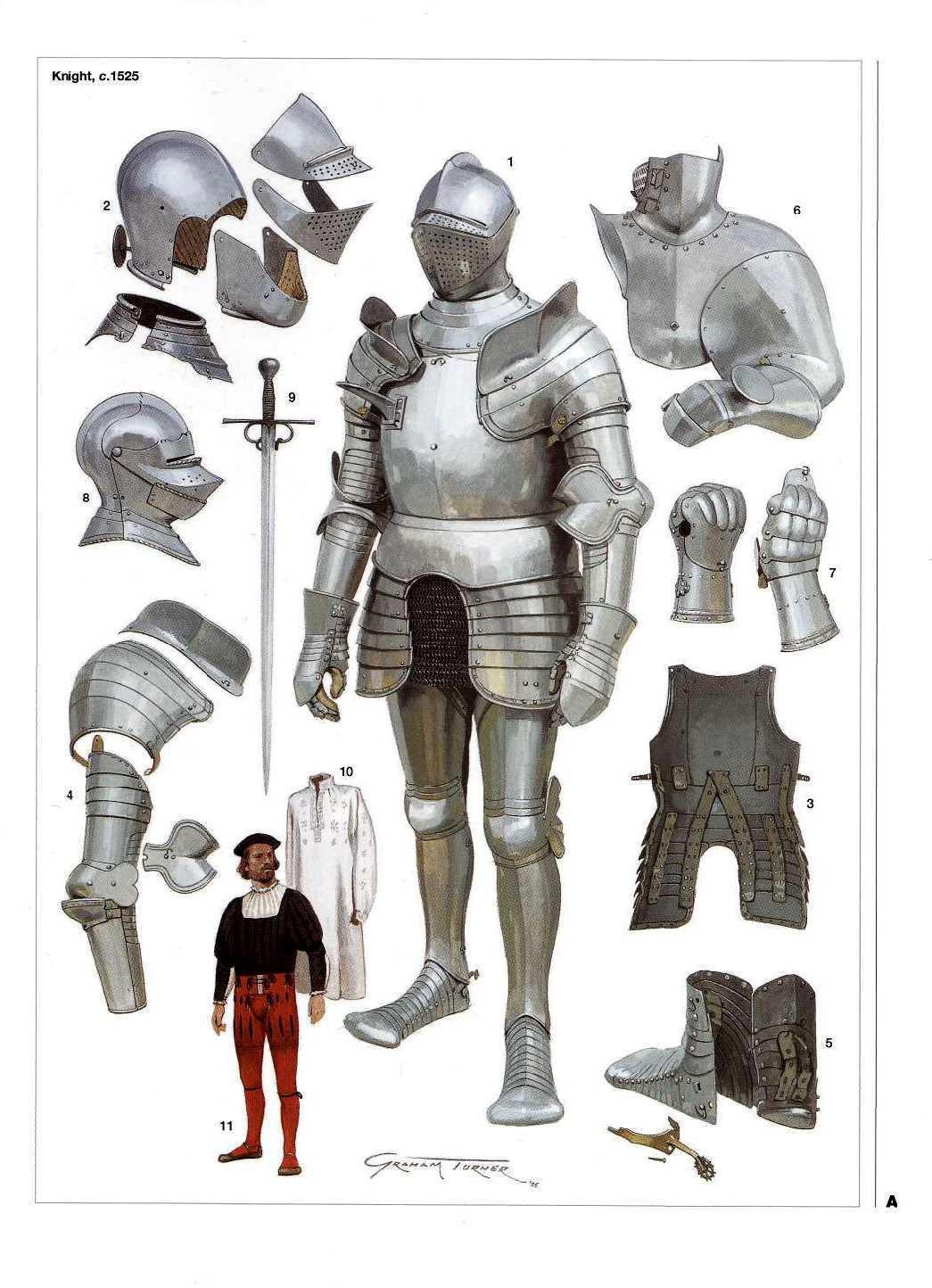 Полное представлении о снаряжении латника даёт полная реконструкция снаряжения воин тяжелой кавалерии Йорков, битва при Босуорте, 1485 год.