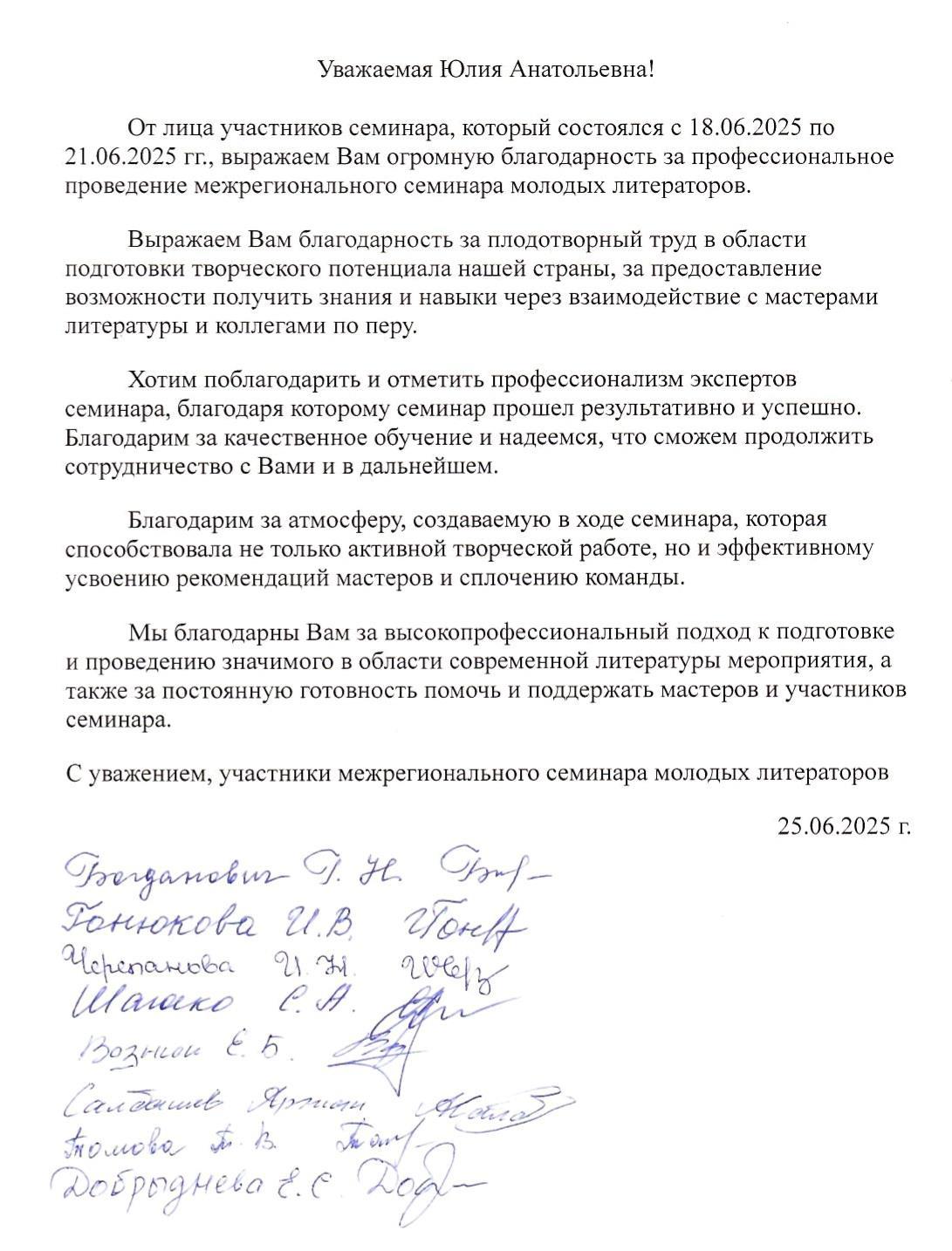 ...а сегодня мне передали письмо благодарности 💌✨ от семинаристов - молодых авторов, которые выдержали эту столь интенсивную литературную учёбу, а это, поверьте, дорогого стоит!!! Спасибо вам, мои хорошие!!! 😘💗💞