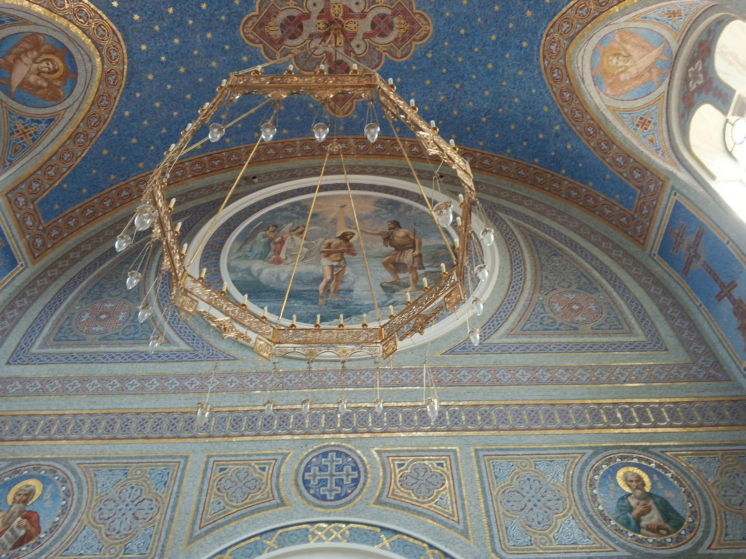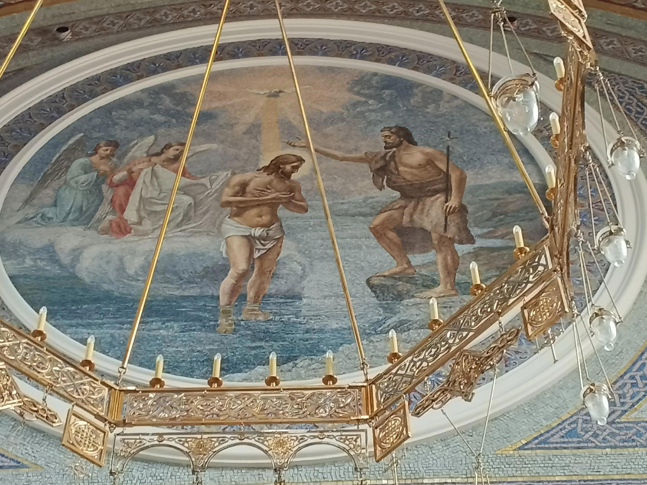 Прекрасная мозаика крещения Христа в реке Иордан. Сфотографировала так же, как и явление Хрсита апостолам. Очень уж эффектно выглядит.