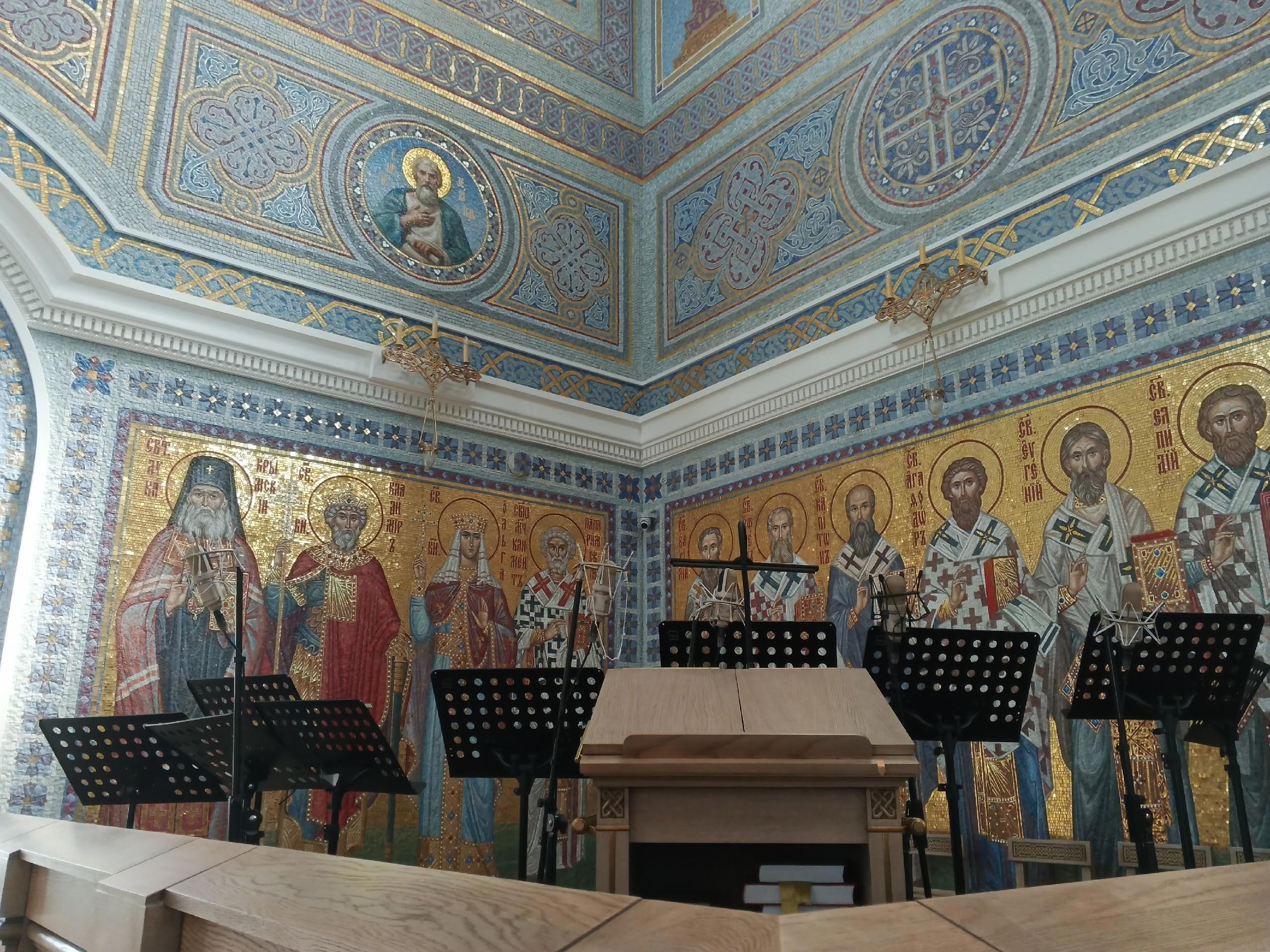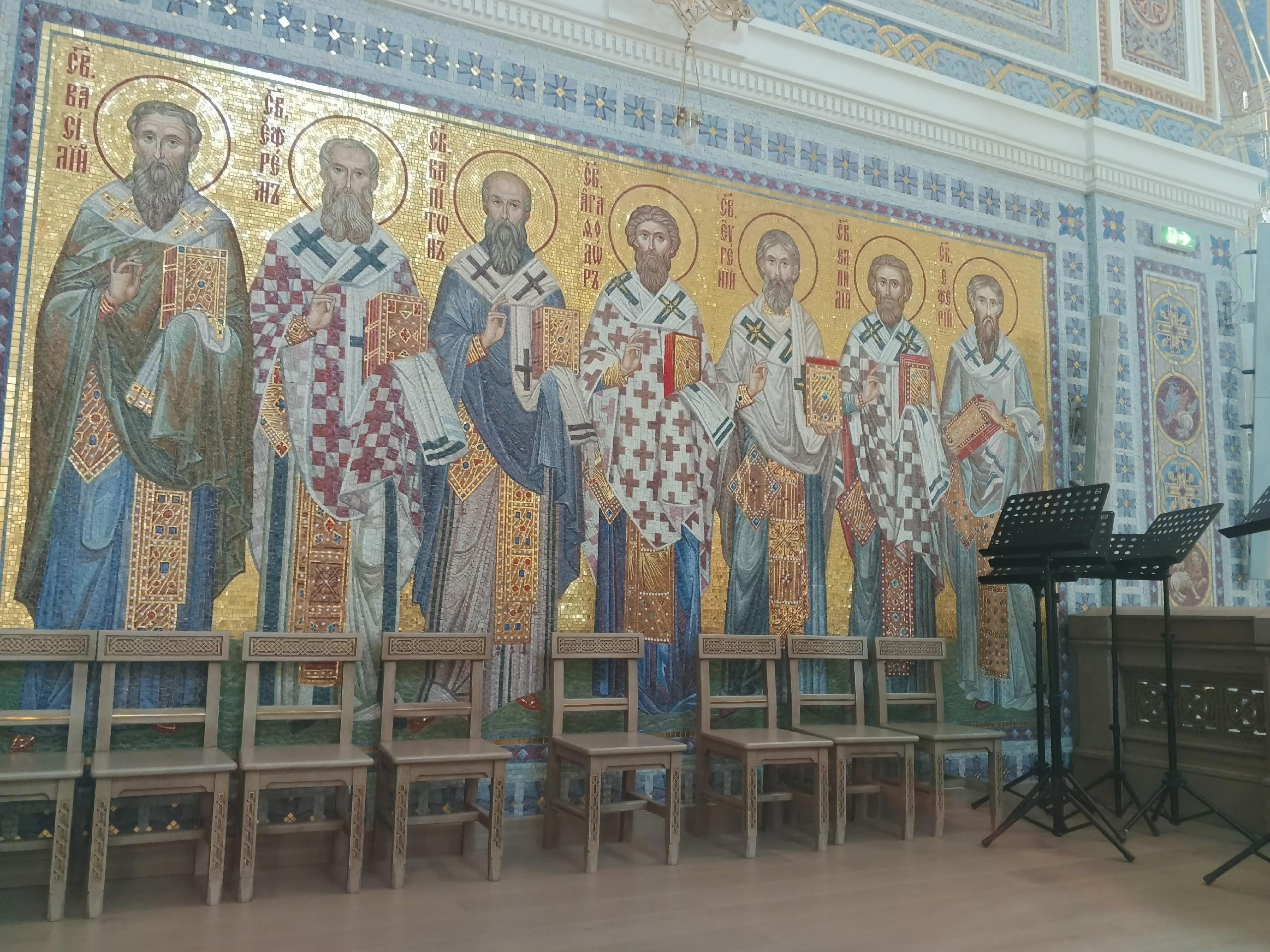И мне очень понравились мозаики, которые находятся вокруг клироса (хоры - место, где располагается хор и регент в церкви)