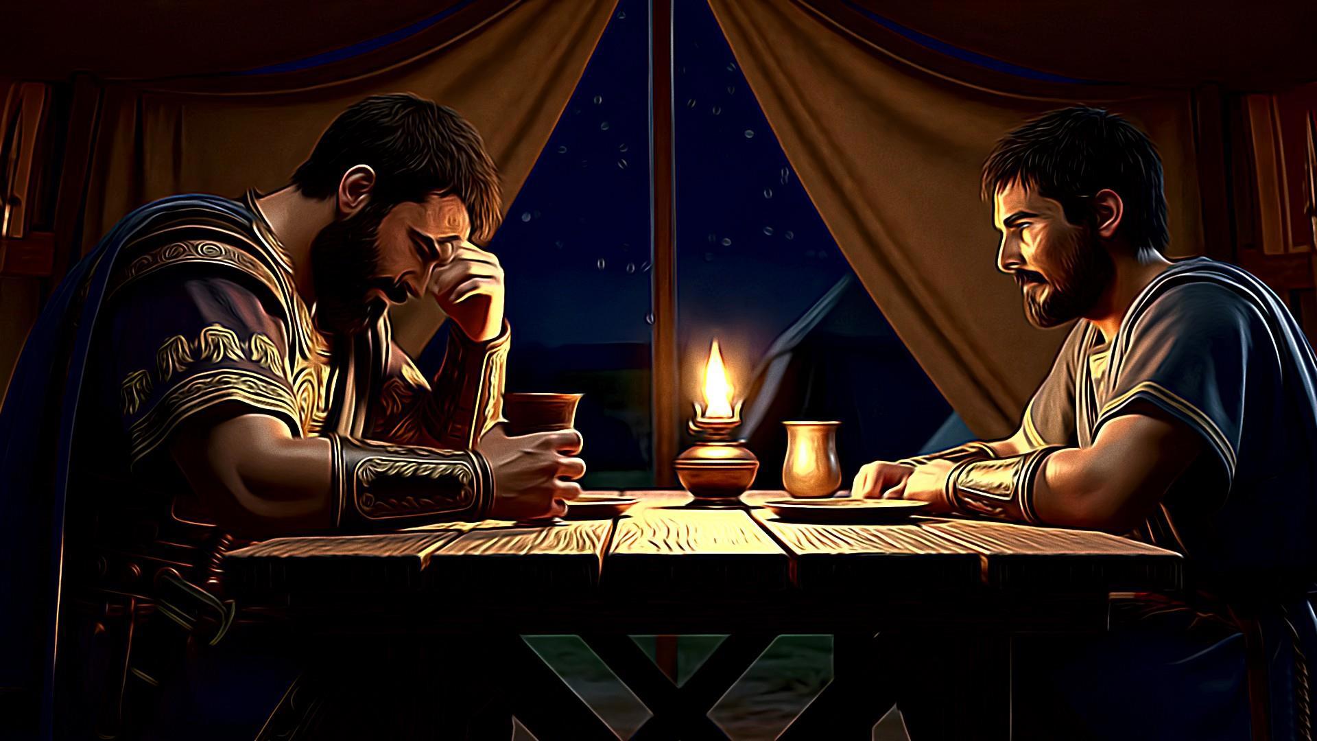 Те временем Хаттусили спешит на помощь. Людей у него не очень много, поход по горам длится уже месяц. Все очень устали. Но сходу вступают в бой. На закате.