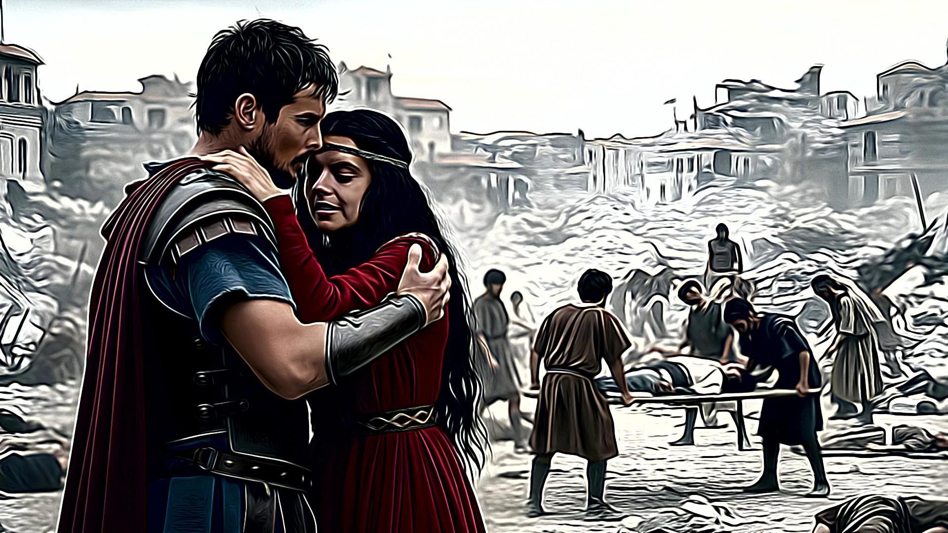 И вот тут происходит землетрясение, которое и разрушает могущественную и богатую Трою VI. Оно не было совсем уж внезапным, толчки появились раньше. Сражение прерывается. Остатки ахейцев уходят. А троянцам остаются руины их привычного мира. В своём прошлом великолепии Троя больше никогда не возродится. Хастияр и Элисса.