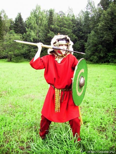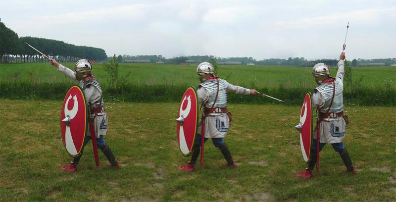 Отдельно стоит упомянуть дротики - "плюмбаты", хотя название это условное, точное название этого римского оружия не известно, носившиеся по нескольку штук в легионерском щите. Дротики этого типа отличались не только свинцовым утяжелителем, как это можно понять по их названию, но и очень малой длиной древка - около 45 сантиметров.