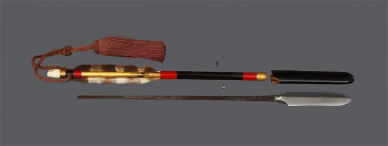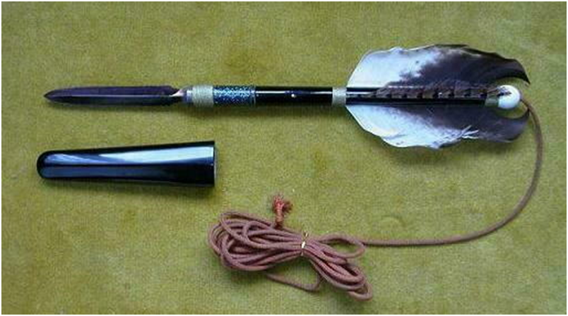Помимо Рима оружие, близкое по конструкции и применению, появилось на противоположном конце света в Японии. Напомню, что самурай это в первую очередь лучник, а лук у него большой. И бывают условия когда лук не применить, а что то кинуть во врага надо, или очень хочется. Сначала кидали стрелы, но стрела это не то что нужно. И позднее у японцев появились, как они их стали называть "метательные стрелы", японцам свойственно всё извращать и называть не так. И получившие в японском языке названия - утинэ (uchine 打根), также называемому футоя (futoya 太矢) – "толстая стрела", нагэя (nageya 投矢) – "метательная стрела" и тэцукия (tetsukiya 手突矢) – "ручная колющая стрела". Утинэ короче и толще, чем обычная стрела – от 36 до 75 см длиной и около 2 см в диаметре. Эти метательные дротики чаще делается из дуба. И вместо свойственного стрелам наконечника используется наконечник подобный копейному, но несколько меньших размеров – от 12 до 26 см длиной.