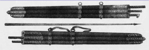 Итак очередная тема - древковое метательное оружие. Дротик (русское название сулица) - метательное оружие, представляющее собой копьё, несколько уменьшенное и облегчённое по сравнению с копьями для конного или рукопашного боя (как правило, имеет общую длину порядка 1,2-1,5 м.) и соответствующим образом уравновешенное для удобства метания. В качестве оружия дротики применялись войсками многих народов и стран мира, начиная с древнейших времен. Дротики появились в начале мезолита, когда люди научились крепить к простейшим копьям-острогам наконечники из кости и камня. Листовидный кремнёвый наконечник от дротика - один из самых массовых видов археологических находок первобытного мира.