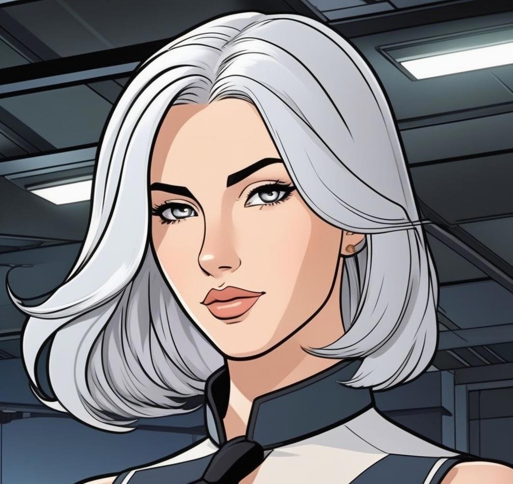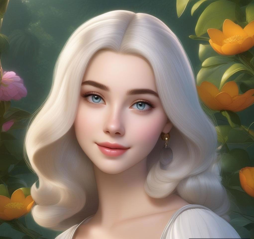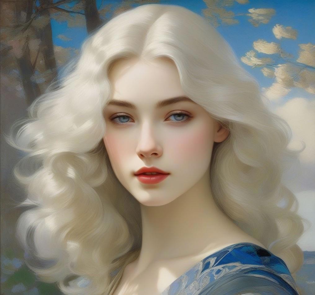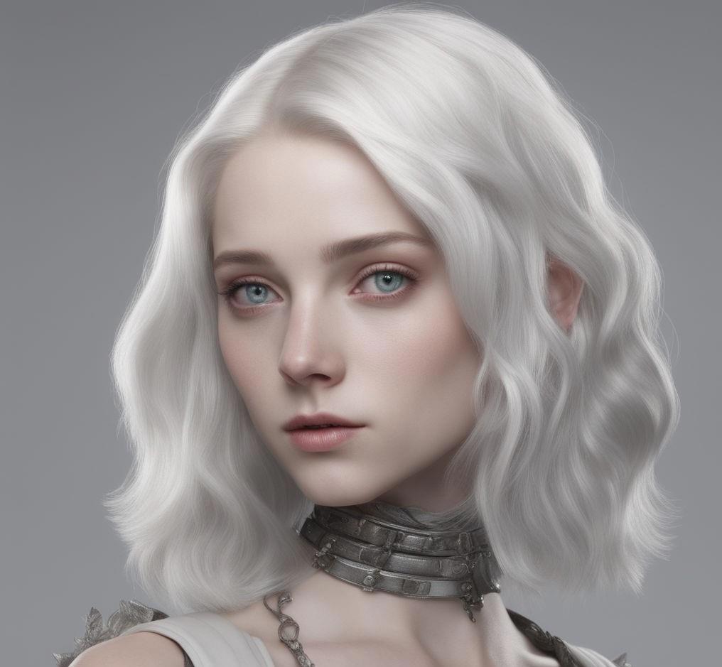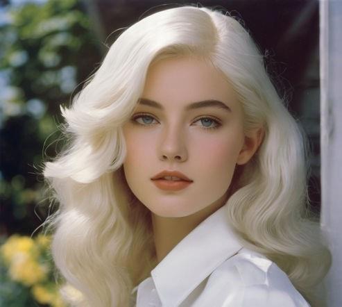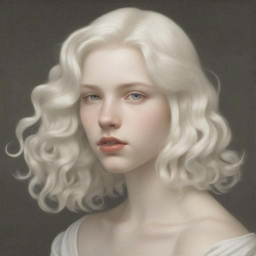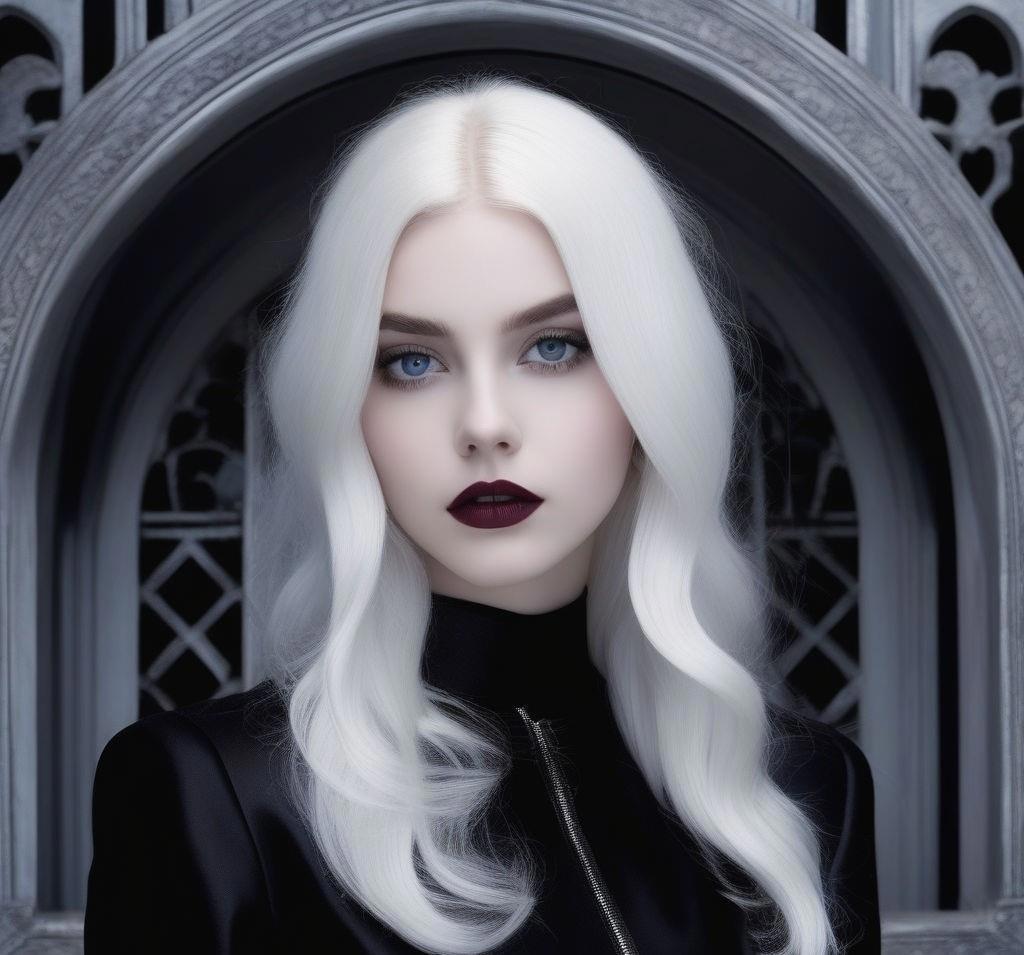 Девятнадцатилетняя девушка с прямыми по плечи платиновыми волосами, с фарфоровой кожей, классическими чертами лица и платиновыми глазами