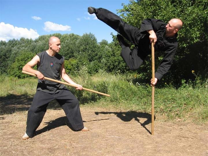 В общем можно сказать что посох (шест) - это вспомогательный вид древнейшего оружия, корни которого уходят еще во времена, когда наш пращур впервые поднял с земли палку. Это совершенно различный по весу, длине, тяжести, материалу у разных народов предмет подручного вооружения. И применялся он когда по каким то причинам (религиозным, юридическим, а то и просто по сложившимся обстоятельствам) классическое боевое оружие было не доступно. Чуть ли не единственное, что можно выделить общего - шест, обычно, держат в базовой стойке двумя руками. Но и это далеко неоднозначно.