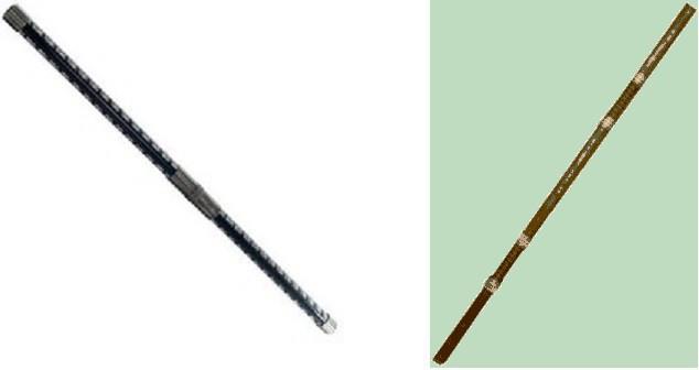 Но, в Персии существовал и настоящий боевой посох - аттуок. По своей сути это довольно длинный лом. С обоих концов с набалдашниками или просто заточенный. К средине утолщался и был обмотан тонкой кожей. Да при всем своем и так сокрушительном наборе свойств он еще и был способен вспарывать кожаные доспехи, благодаря сложной ромбовидной насечке, оплетающей весь посох. При весе примерно в четыре с половиной - шесть килограмм, эта штуковина пронзала насквозь легкого пехотинца, легко сбивала с ног. Около шестнадцати миллиметров в диаметре в самом толстом месте, она проскальзывала в самые узкие щели брони, рвала кольчуги. Ну, а при ударе плоскостью, эффект был как от огромного лома.