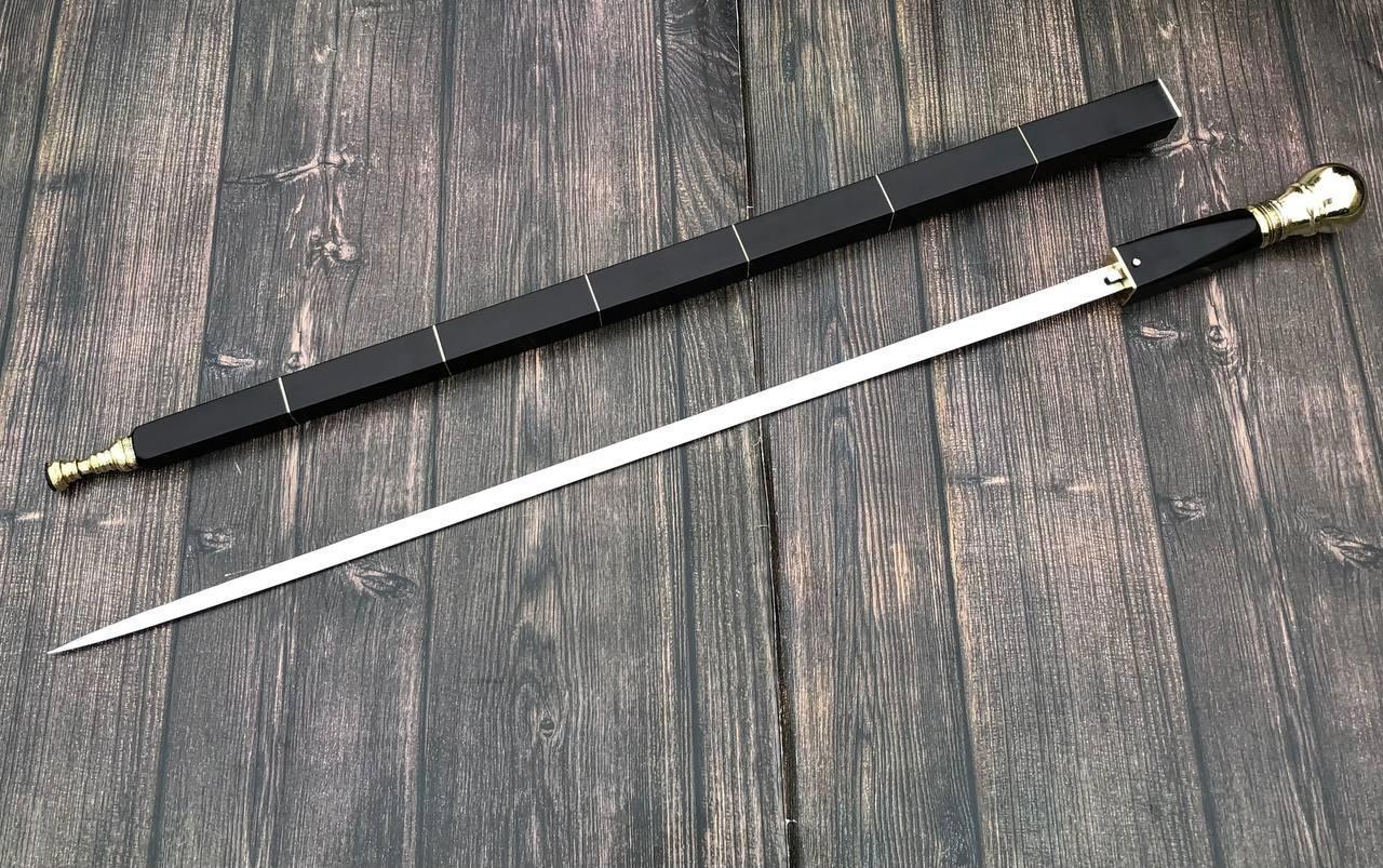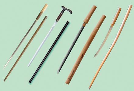 Трость, с тайным клинком. Но даже такая трость продолжается оставаться только оружием гражданской самообороны.