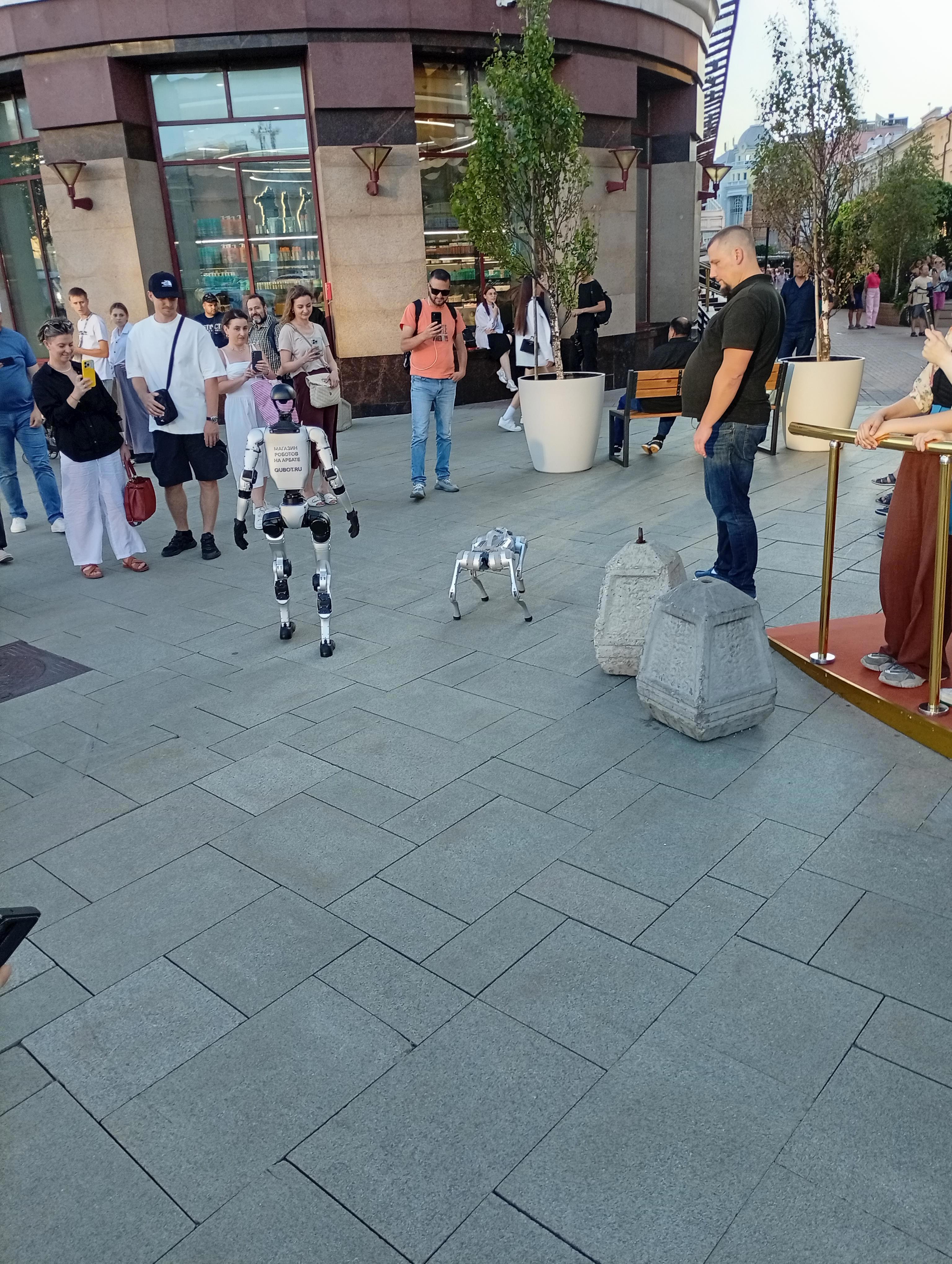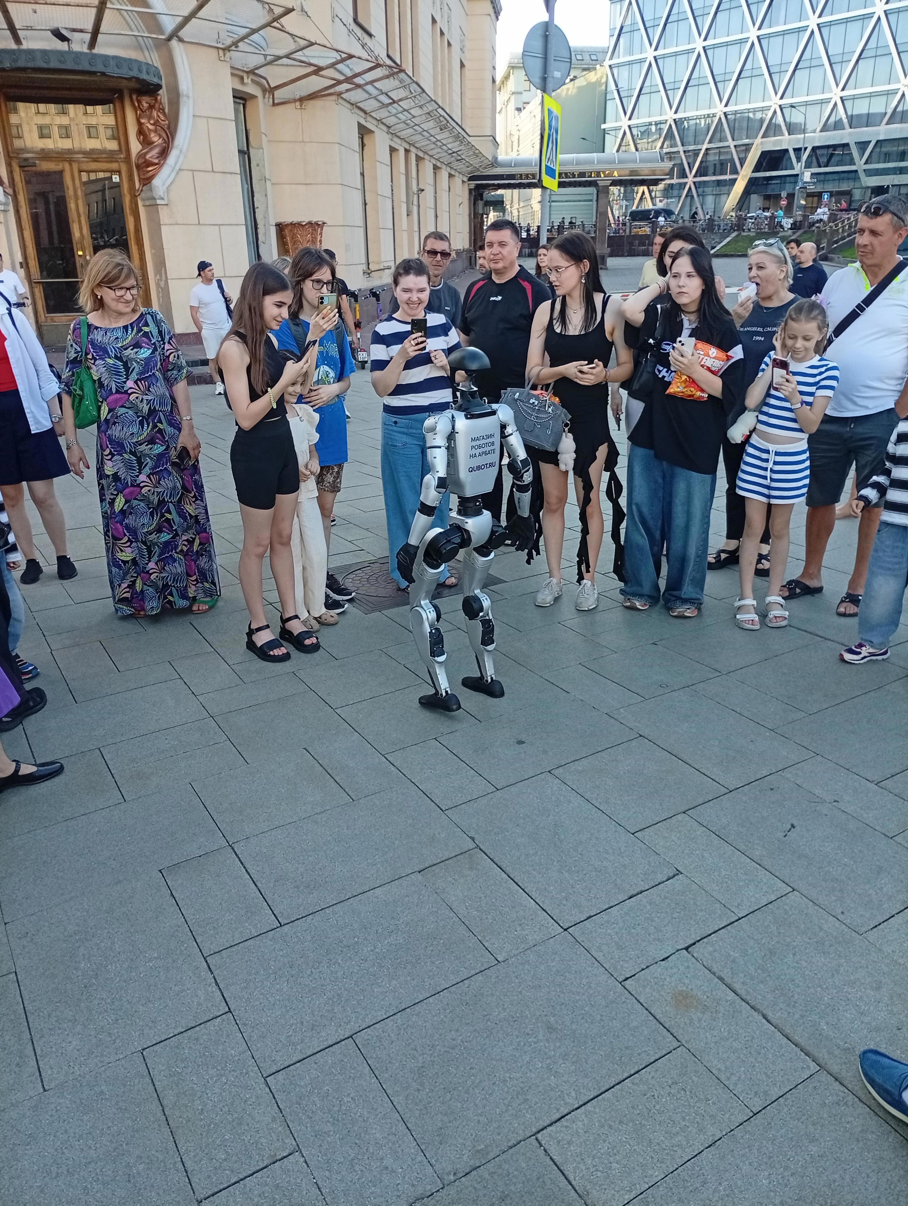 Но я скромный, или может вредный?...я не подошёл)). Короче я так и не дождался начала концерта, ради которого,  в основном, и приехал на Арбат... Но зато.... Восстание роботов на Арбате... Класс... Конечно на ручном управлении, но как они двигаются...