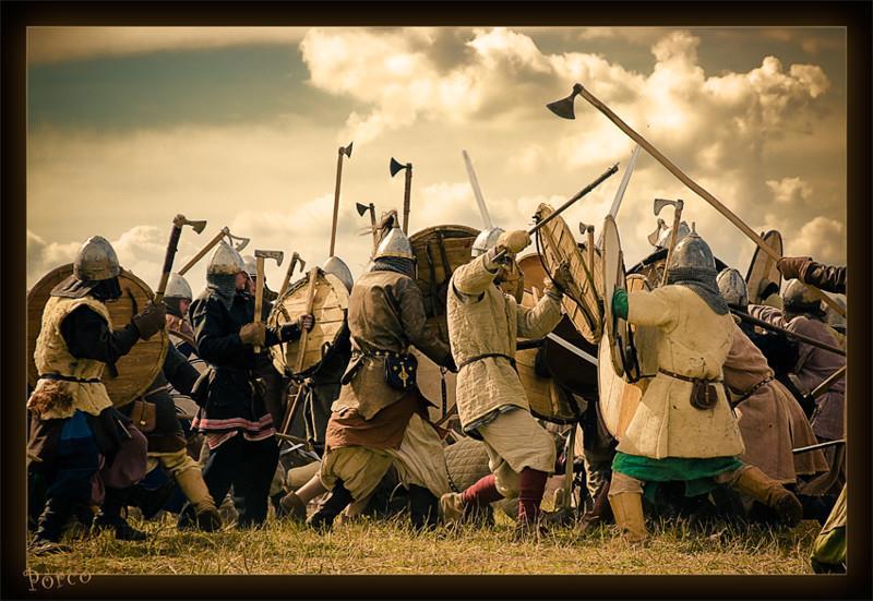Не секрет, что рост и сила дают в рукопашной схватке преимущество. Но в зависимости от того, какое оружие используется, преимущество это может быть большим или малым. Вот, например, в бою на копьях сила и длина рук значения почти не имели. В бою на мечах сила играла далеко не последнюю роль, но значительно более важным был опыт. В бою на топорах сила и рост имели решающее значение. Топором, в принципе, можно наносить удары вперед. Но такие уколы выйдут медленными и неуклюжими. Даже удерживать топор перед собой неудобно. Зато удары топора сверху очень опасны. Двигаясь вниз, топор будет ускоряться силой тяжести и приобретет дополнительную энергию. Удар боевой секиры весом 3-4 кг никак не отбить и не отвести. Не спасут ни щит, ни доспехи. Такой удар неотразим - от него можно только уклониться. Но, естественно, для того, чтобы размахивать тяжелой секирой, требовалась большая сила. Не менее важен был и рост, так как энергия удара напрямую зависела от высоты "падения" топора. Даже при равной силе высокий воин наносил бы топором более опасные удары.
