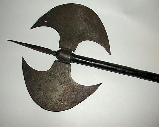Лезвие боевого топора уравновешивалось или тяжелым обухом, или вторым лезвием. Мог как не в виде топора, но мог быть и в виде второго топора. В последнем случае топор превращался в обоюдоострую секиру.