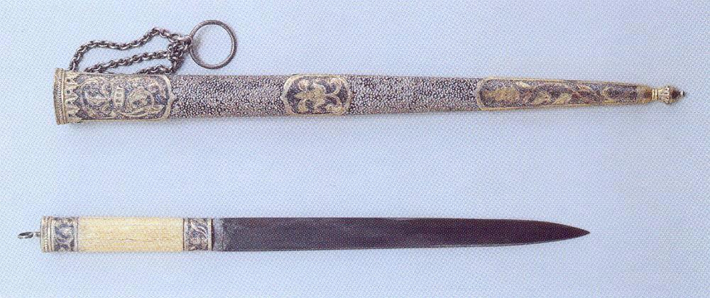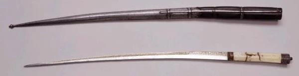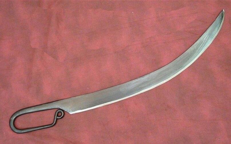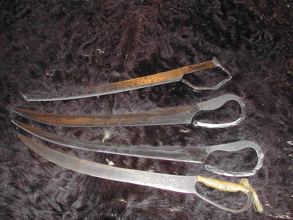 Вплоть до ятаганой формы. Но у них у всех есть особенности в виде рукояти. Позволявшие вытянуть утопленную в ножны рукоять буквально одним мизинцем. Что так же потом перешло к шашке.