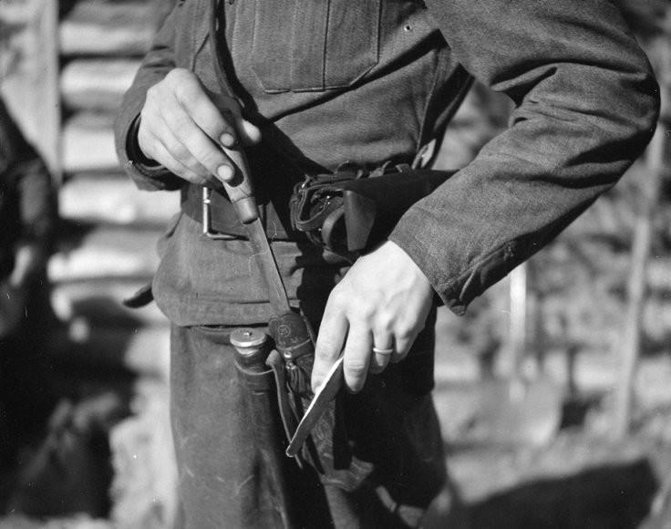 И это всё не было свойственно пуукко. Где особым шиком считалось носить нож на пуговице кармана. Также на многих финках появляется чуждый для пуукко элемент, в виде развитого перекрестия - гарды.