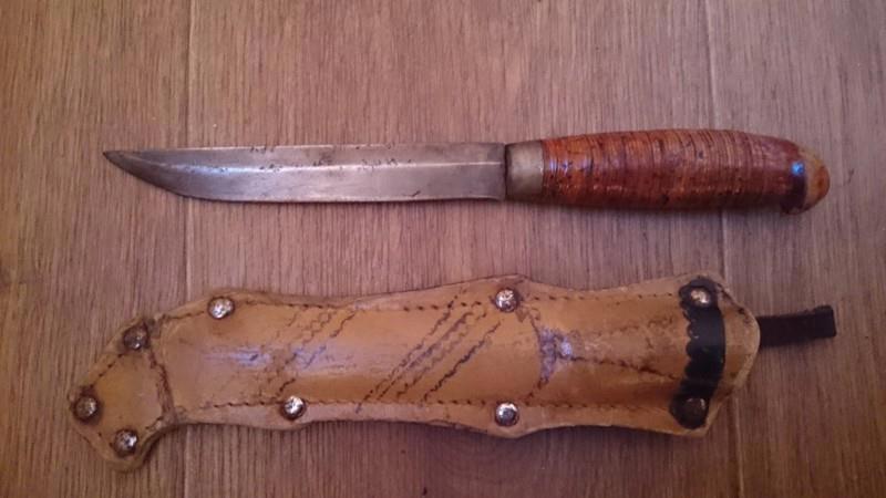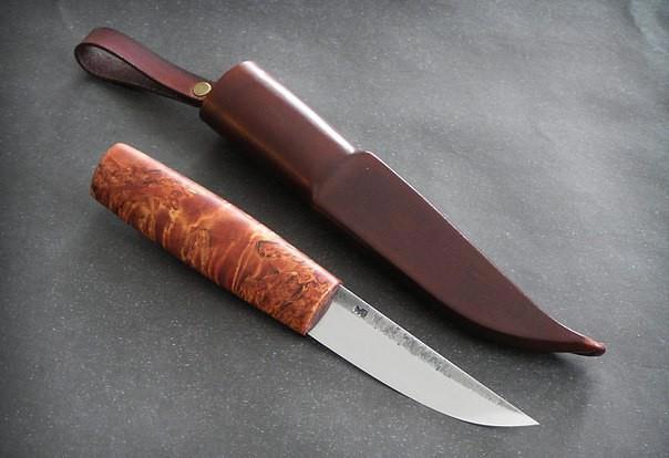 Пуукко для наглядности. рукоять просто ровная деревяшка. Ну и петелька на ножнах, что бы на пуговицу подвесить.