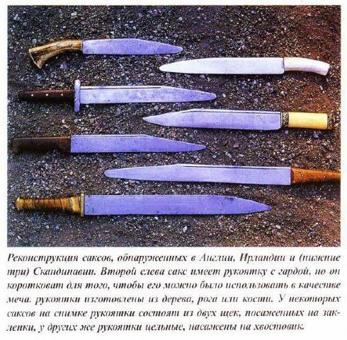 Хорошим примером такого многофункционального, в том числе и боевого ножа, является традиционное оружие германцев - "скрамасакс", или просто "сакс", (лат. scramasax, sax) - нож давший имя целому народу и самый распространённый боевой нож Европы. И чуть ли не единственный боевой нож у викингов. Скрамасакс являлся вспомогательным оружием. И имели относительно малую для клинкового оружия длину - 35-55 см (из них на рукоять приходилось около 10 см). При такой длине ширина клинка была от 2 до 3 см, а толщина его у рукояти - от 0,6 до 0,9 см. При весе 0.6-0.7 кг.