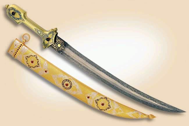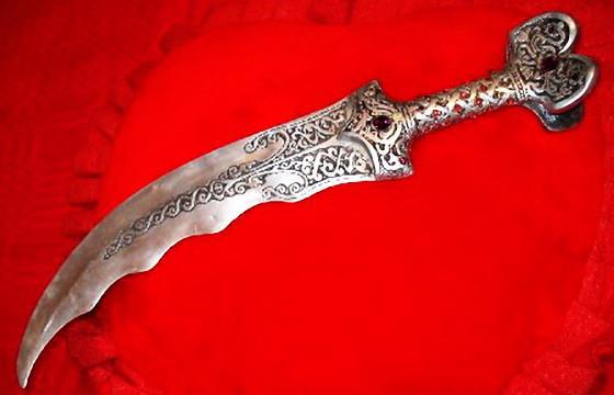 Кинжалы с изогнутыми клинками свойственны, по преимуществу, Востоку и мало знакомы Западу. Представляясь западноевропейской культуре, в том числе и оружейной, чем то диковинным. Хотя такие изогнутые клинки имел копис древних персов и затем греков, и имеют сейчас джамбии или ганджир - кривой индийский кинжал, с лезвием обратной заточки (ятаганного типа).
