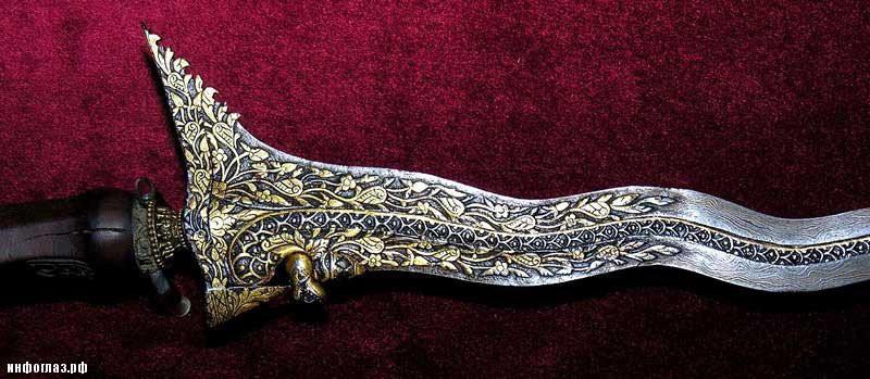 Саму идею "змеящегося" клинка малайцы, несомненно, позаимствовали в Индии, где подобное оружие появилось еще в древности. Но ни в Индии, ни на Ближнем Востоке "пламенеющие" мечи распространения не получили, как и в Европе. Для "доведения идеи до ума" требовалось решить еще ряд проблем.