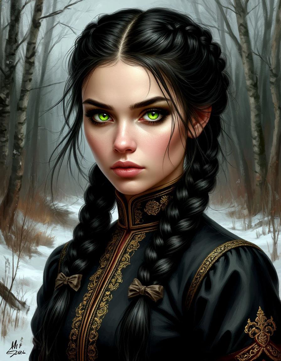 Снова присоединяюсь к бессрочному флешмобу от Кейт Андерсенн и представляю персонажа темного славянского фэнтези "Преданные богам(и)"княжну Червику, с портретом от нейросети: