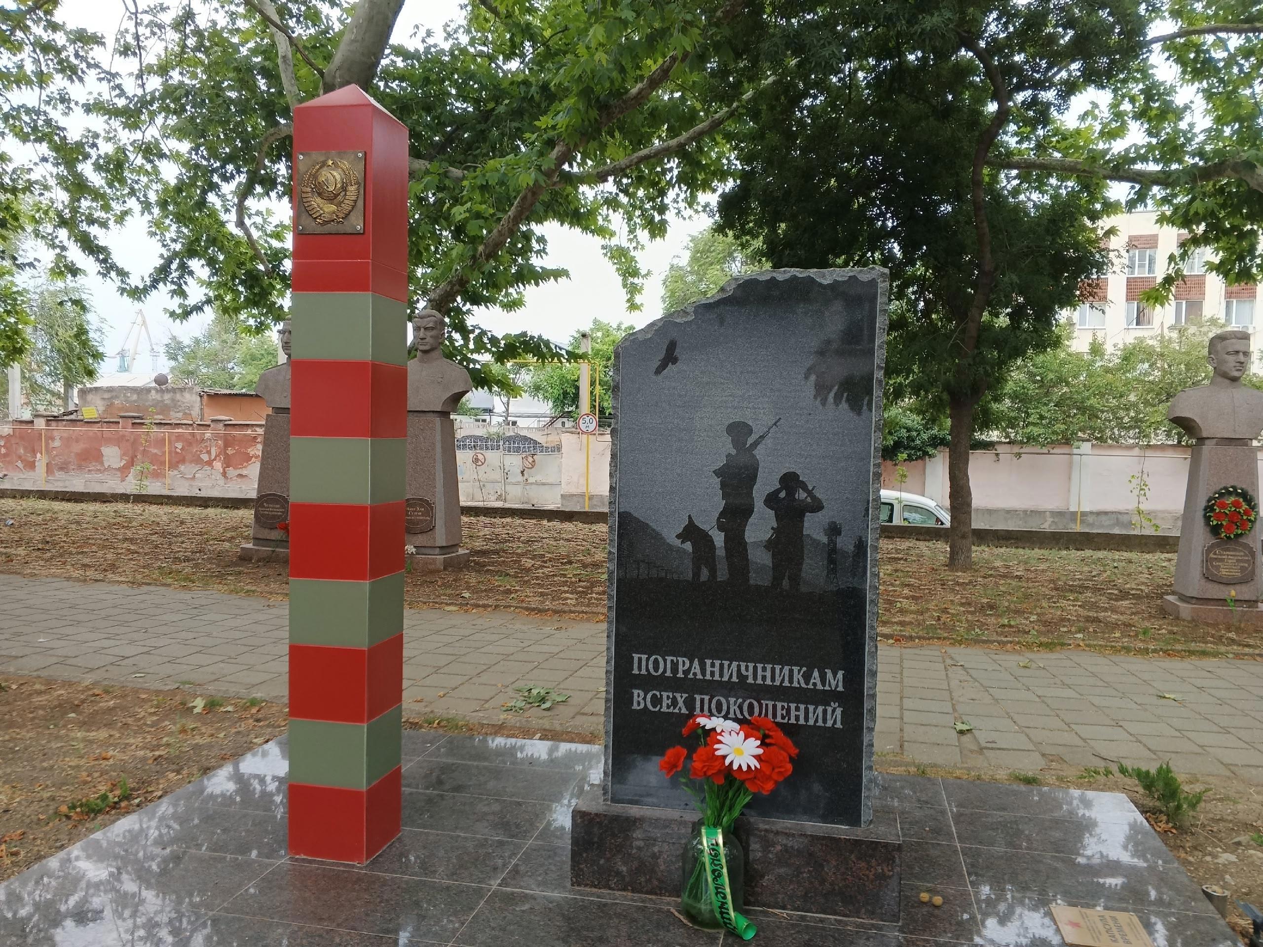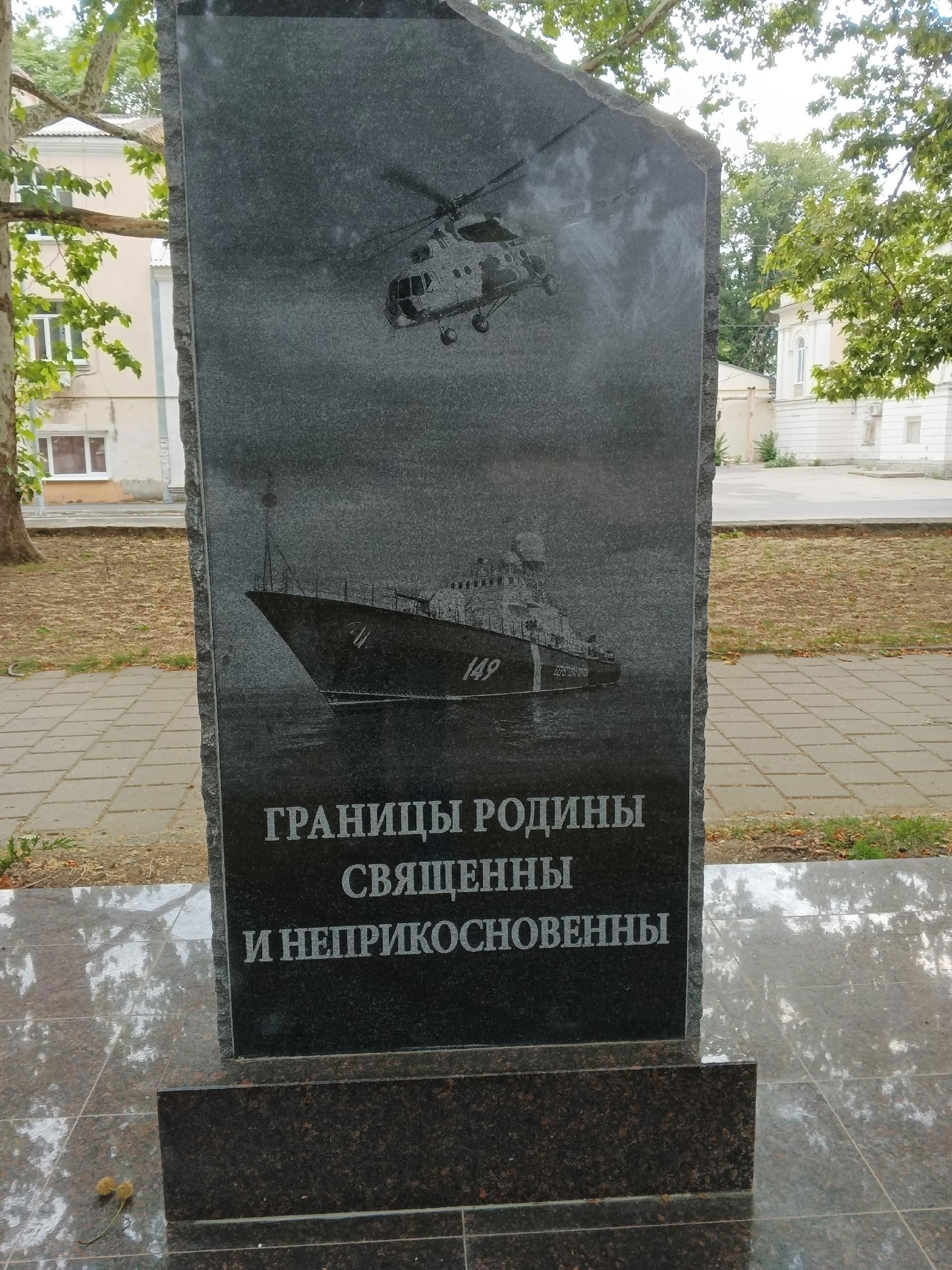 Дальше мы обнаружили памятник пограничникам. Здесь граница проходит по морю, но и побережье тоже граница. Мы помним и отдаём должное памяти пограничников всех поколений.