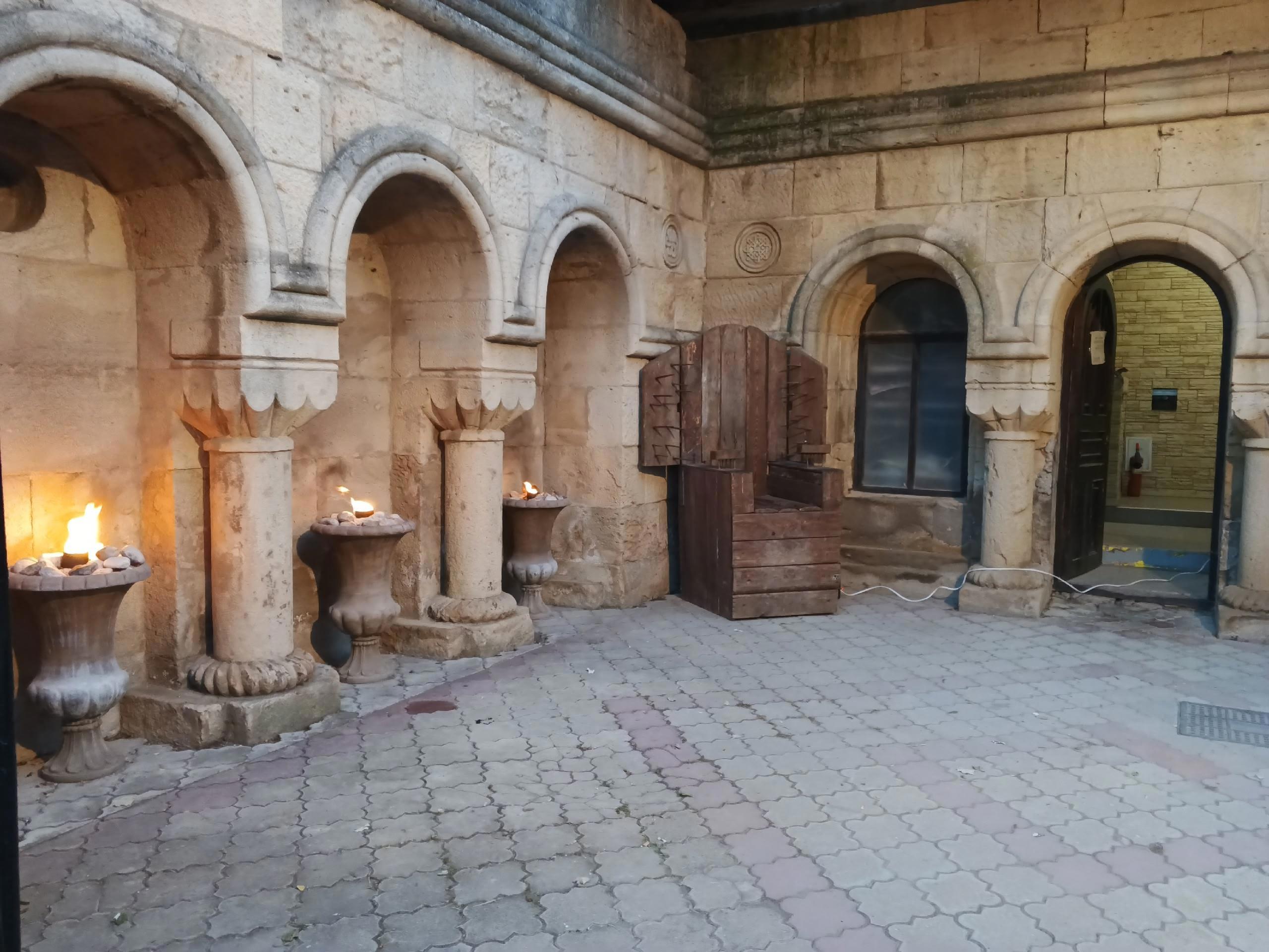 Дворик и подвал "Виктории" используются регулярно как арт-объекты, а также как музей. В этот раз мы не стали заходить в него, а только заглянули, привлечённые ярко горящими огоньками.