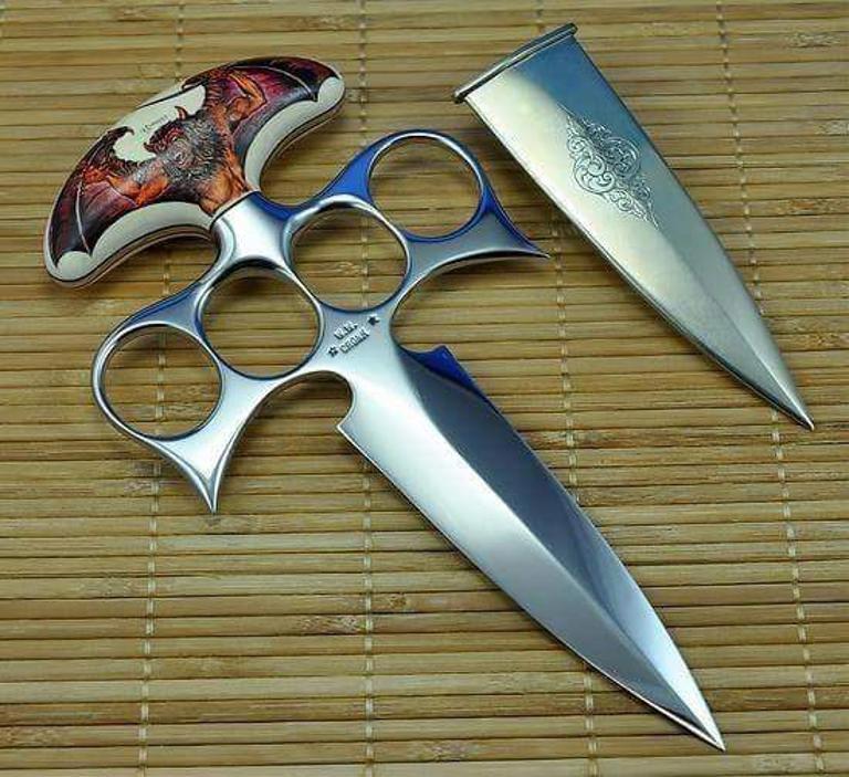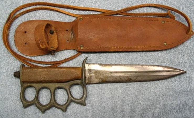 В частности такой кастет, с кинжальным клинком был принят на вооружении армии США. В качестве траншейного оружия.