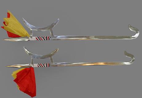 Общее с катаром с несколькими остриями имеет шуан-го или шуан-гоу. Китайское оружие с рукояткой кулачного хвата усиленной серповидным лезвием. И имеющим с одной стороны крюк с заточкой, с другой колюще-режущее лезвие кинжального типа. Цельнокованныый клинок до 75 см и весом порядка килограмма, имеющий изгиб на конце в форме клюва сокола (описание из классического ушу), а на деле загнут в кольцо с образованием крюка на конце. Гарда отсутствует и заменена кованным кастетом с лезвием в виде полумесяца, закрывающим пальцы руки. Заточка идёт по всей длинне, исключая рукоять, обматываемую тканью, а реже кожей с обеих сторон. В результате получается оружие, имеющее не одну, как у меча, а три поражающих кромки. Но в отличие от катара или паты являющаяся скорее оружием самообороны.
