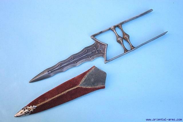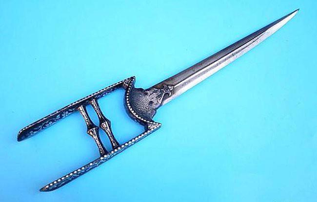 Техника владения кистевым (кулачным) оружием мало чем отличается от кулачного боя. Только при одном условии, что каждый удар таким "кулаком" оставляет в вас одну или несколько дырок. И самым ярким представителем этого оружия является катар - индийский кинжал тычкового типа, другой вариант названия - джамадхар ("клинок бога смерти" или "язык бога смерти"), с толчковой поперечной рукоятью наподобие буквы "Н". Не самое распространенное оружие Индии, хотя подобное оружие встречалось и в Китае, Индонезии и в Европе.