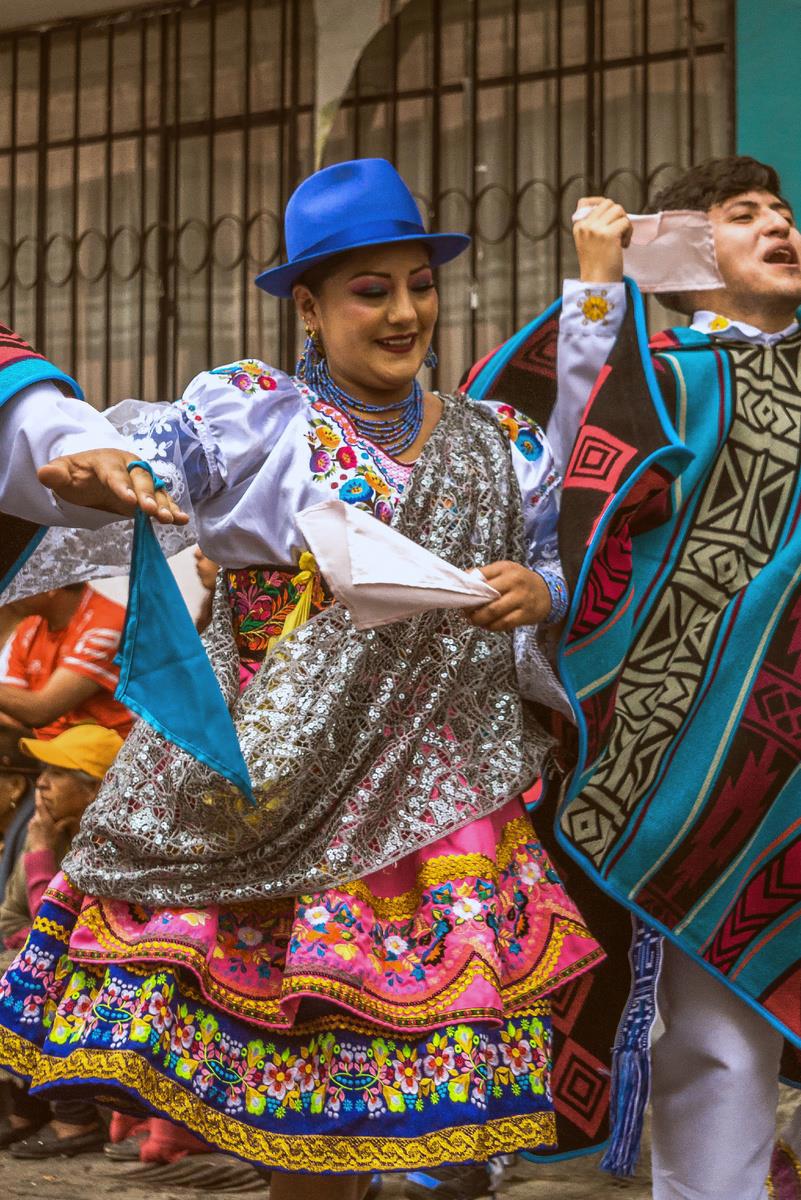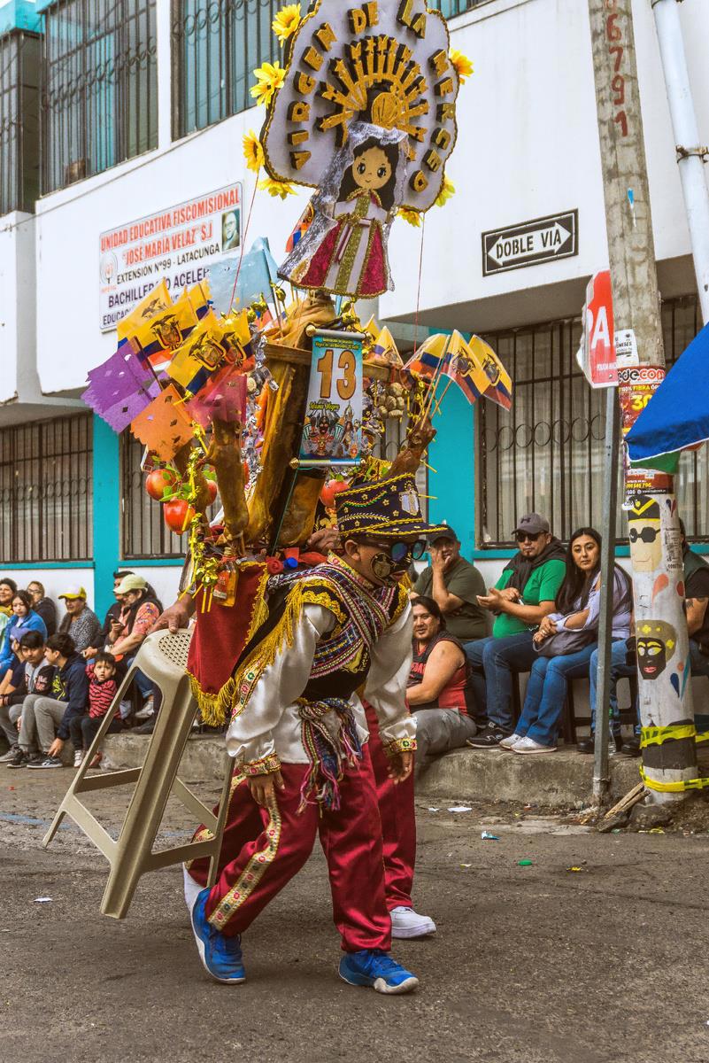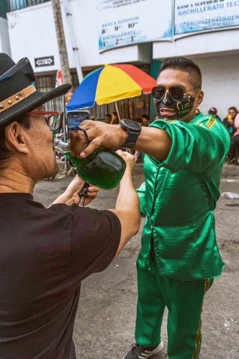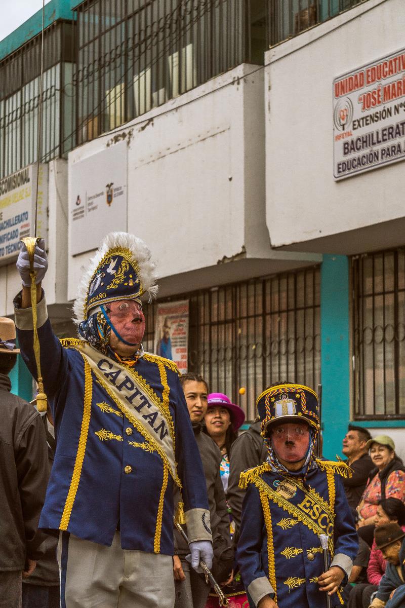 Жители Латакунги и редкие туристы занимают места заранее, набирают себе пивка и смотрят за парадными коробками (назовём их так), которые всегда повторяются. В каждой группе* обязательно есть оркестр, танцоры, несуны еды (ашангерос), старушки-веселушки (гуаричис), один наливатель (лос лоэрос) и троица очистителей (уакос). Сразу говорю, эти функции придумала им я, ну, потому что мне так удобнее. Настоящие наименования — они в скобках, ага.