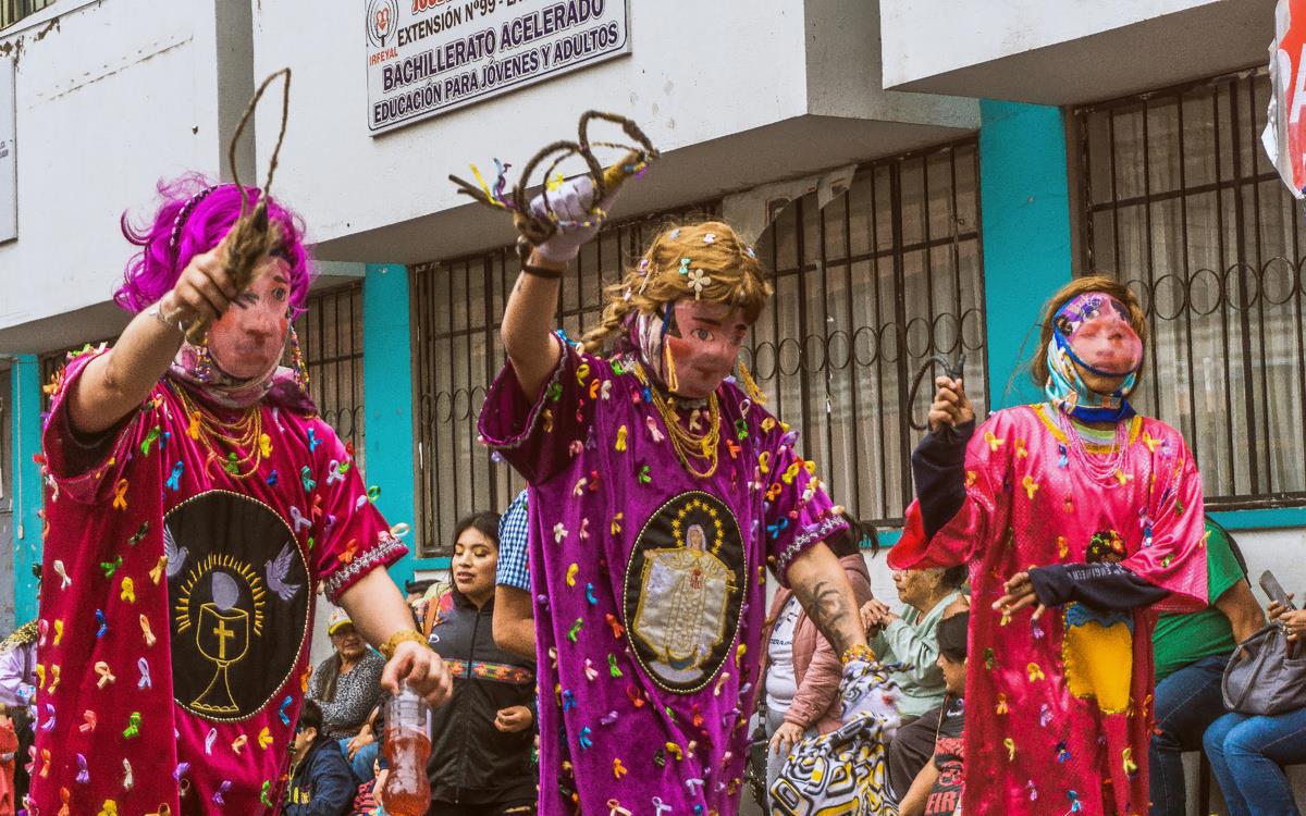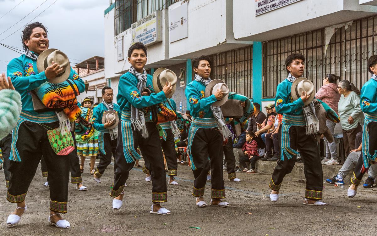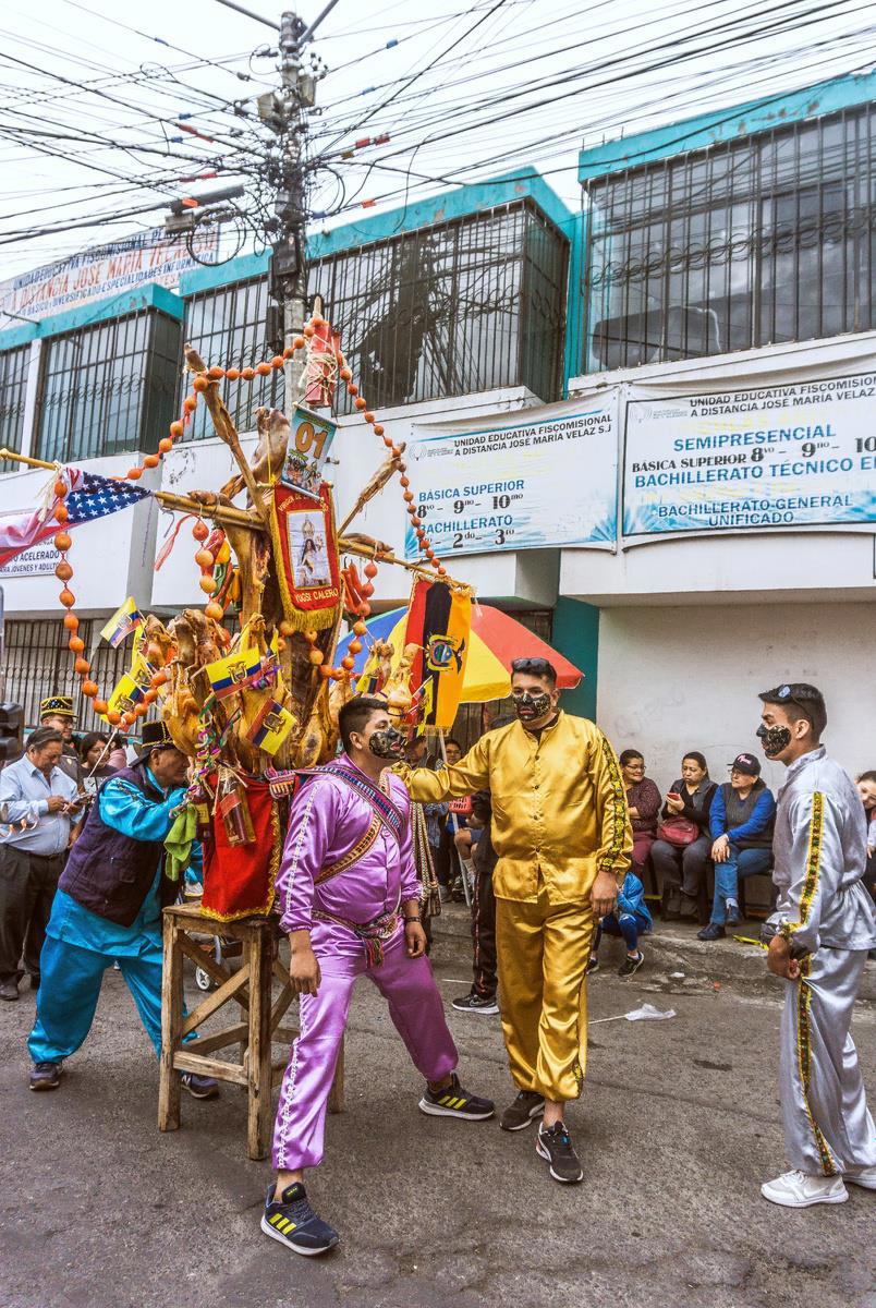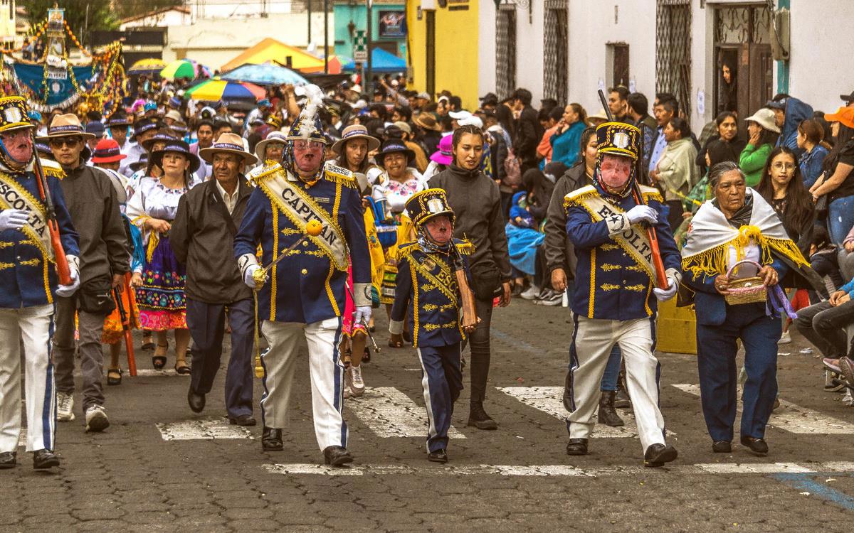 Жители Латакунги и редкие туристы занимают места заранее, набирают себе пивка и смотрят за парадными коробками (назовём их так), которые всегда повторяются. В каждой группе* обязательно есть оркестр, танцоры, несуны еды (ашангерос), старушки-веселушки (гуаричис), один наливатель (лос лоэрос) и троица очистителей (уакос). Сразу говорю, эти функции придумала им я, ну, потому что мне так удобнее. Настоящие наименования — они в скобках, ага.