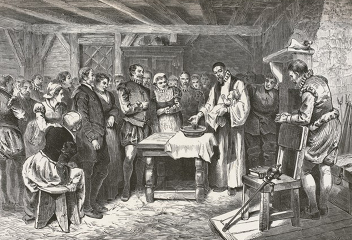 Крещение Виргинии Дэйр. Литография, Генри Хоу, 1880 год