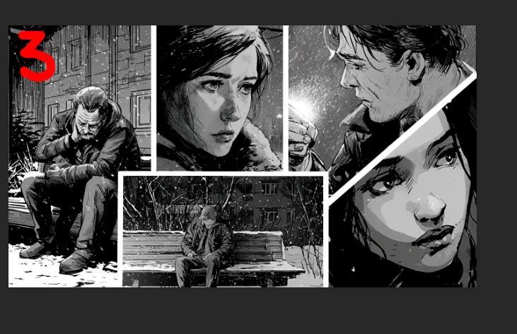 А сегодня у нас Лара Грин Любительница чёрно белого аскетизма-минимализма. Опять же, всё упирается в сюжет. Поэтому три разных стиля. Комикс пришлось собирать из кучи вариантов. Смотрите. Выбирайте.🙂