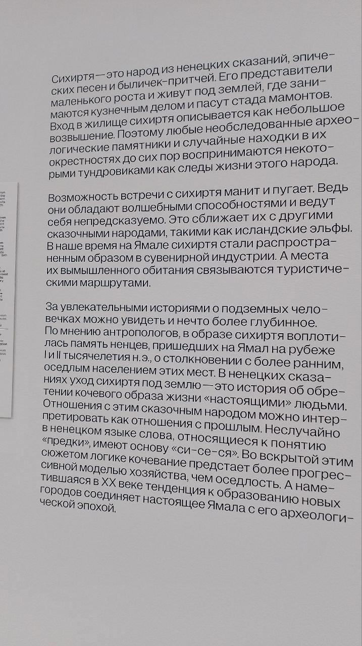 Хочу рассказать о выставке «Ямальский хронотоп» в ГЭС-2. Это было потрясающе! Я узнала много нового о фольклоре и мифах малоизвестного народа. Это меня очень впечатлило.