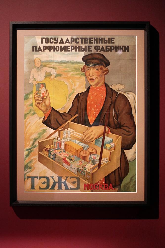 Характерная особенность выставки – большое количество плакатной графики, украшавшей места общественного пользования, жилые дома, рабочие пространства, клубы, афишные тумбы и улицы постреволюционной страны. Выставка рассказывает о становлении парфюмерной промышленности, тресте «ТЭЖЭ», фабрике «Новая заря» и аромате «Красная Москва».