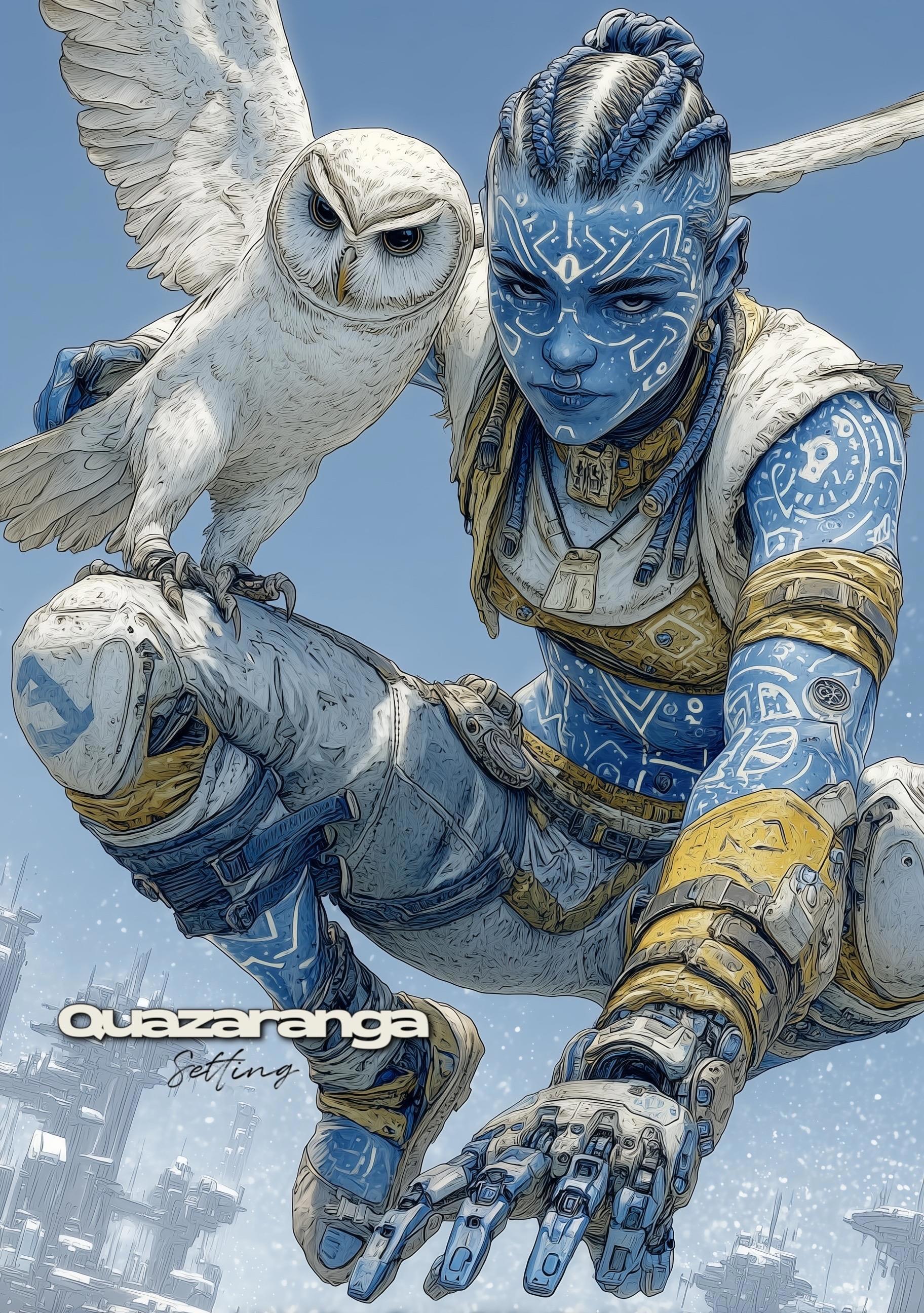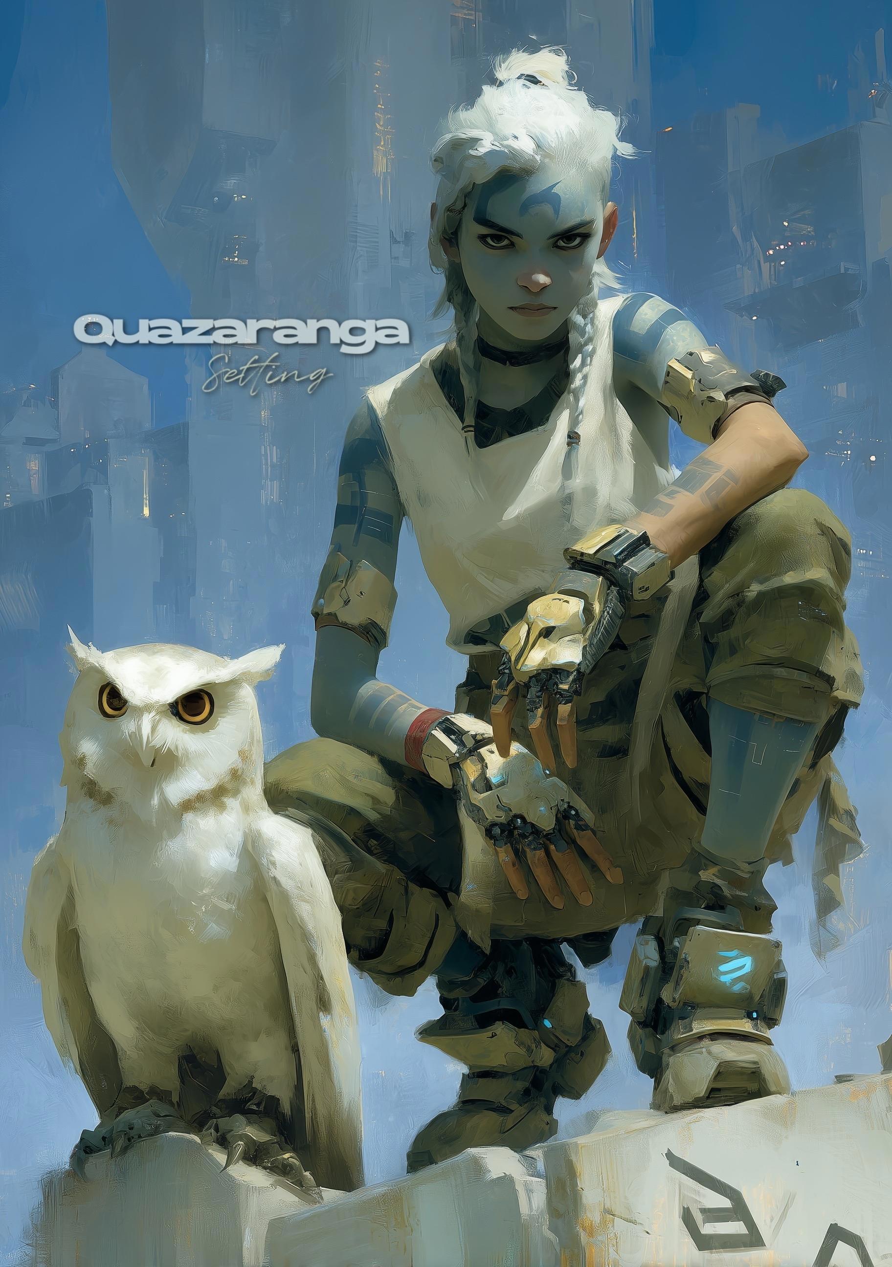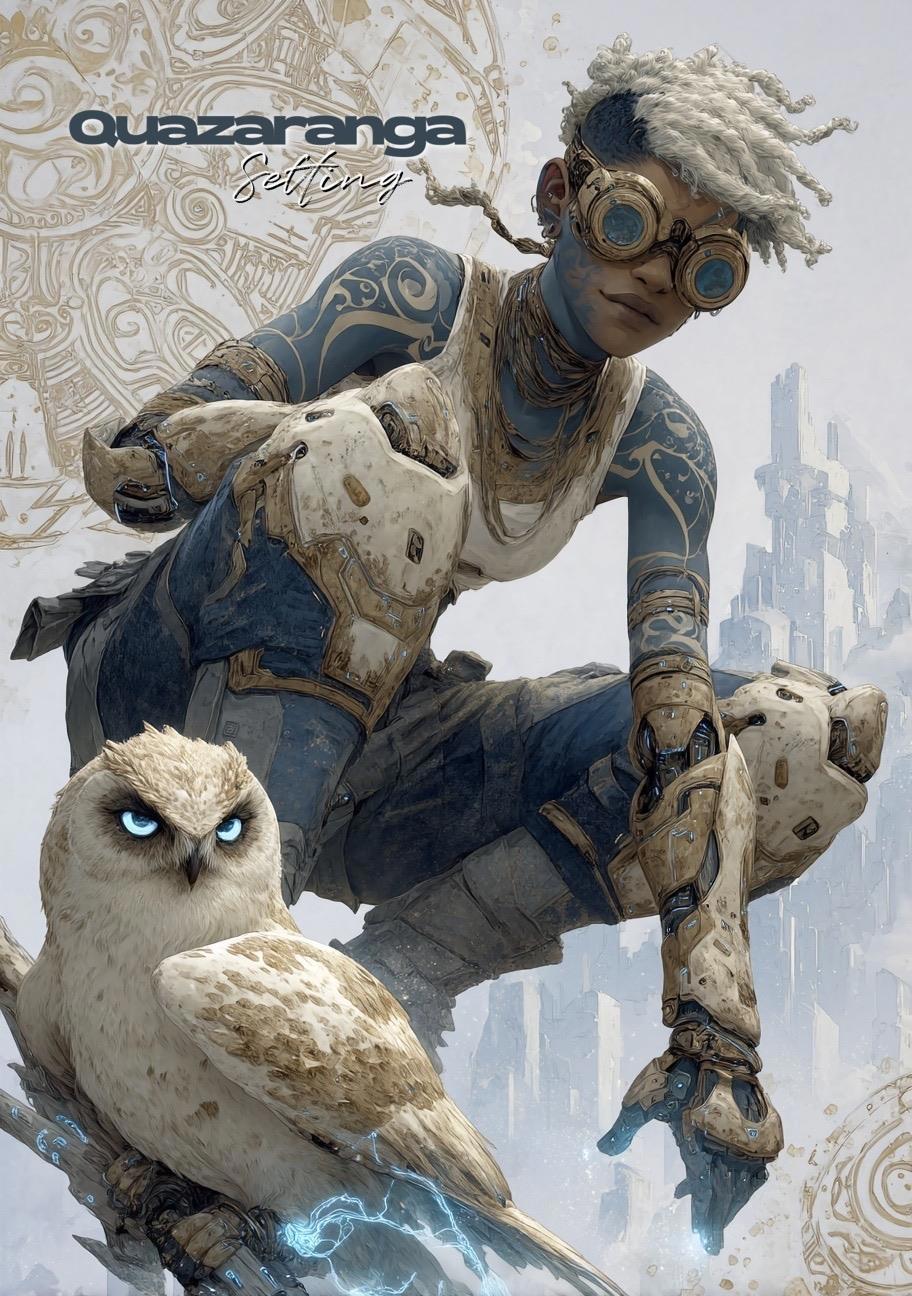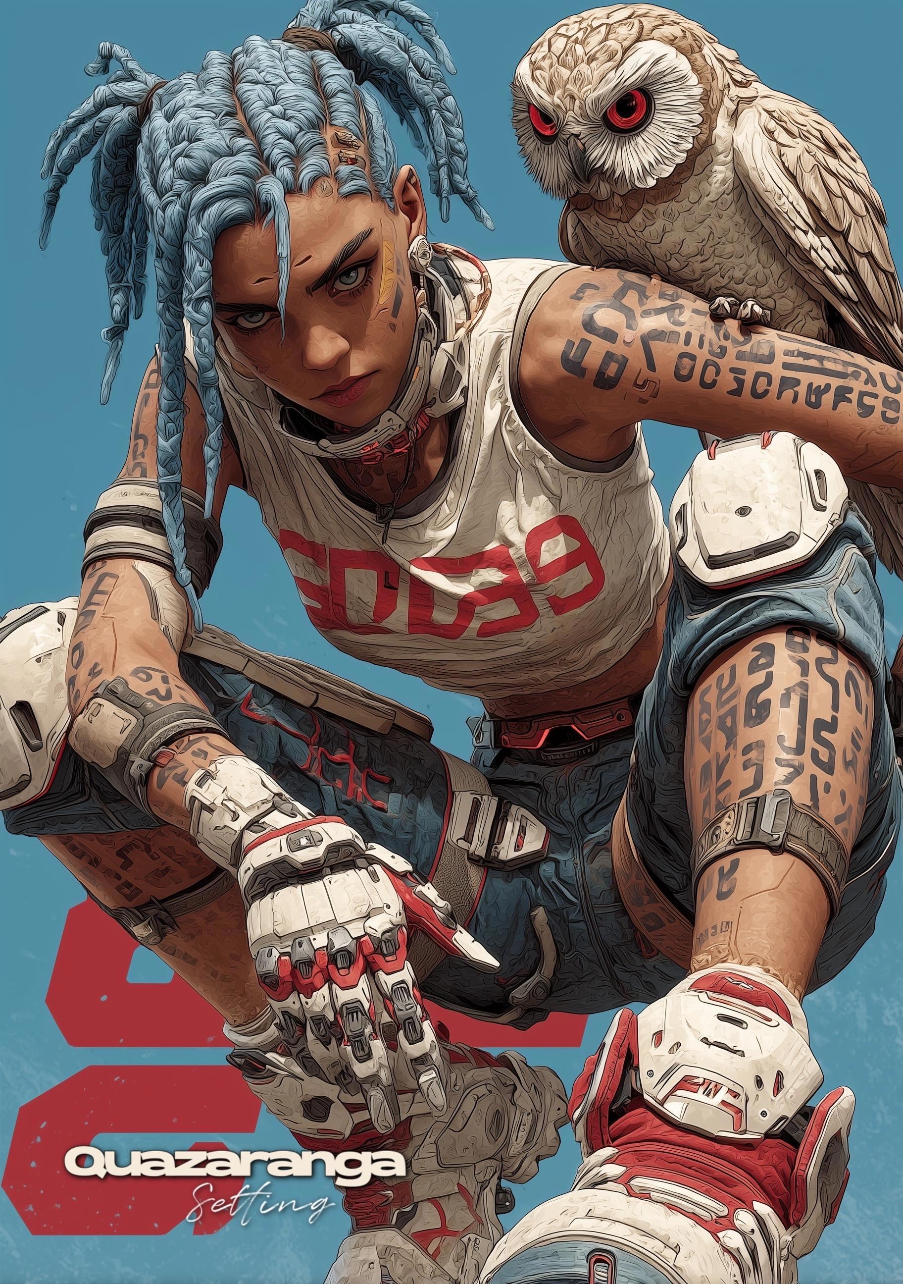 На картинке девочка нейрохакер с фамильяром совой. По логике, фамильяр — роботизированный, что не сильно заметно, но поправимо…