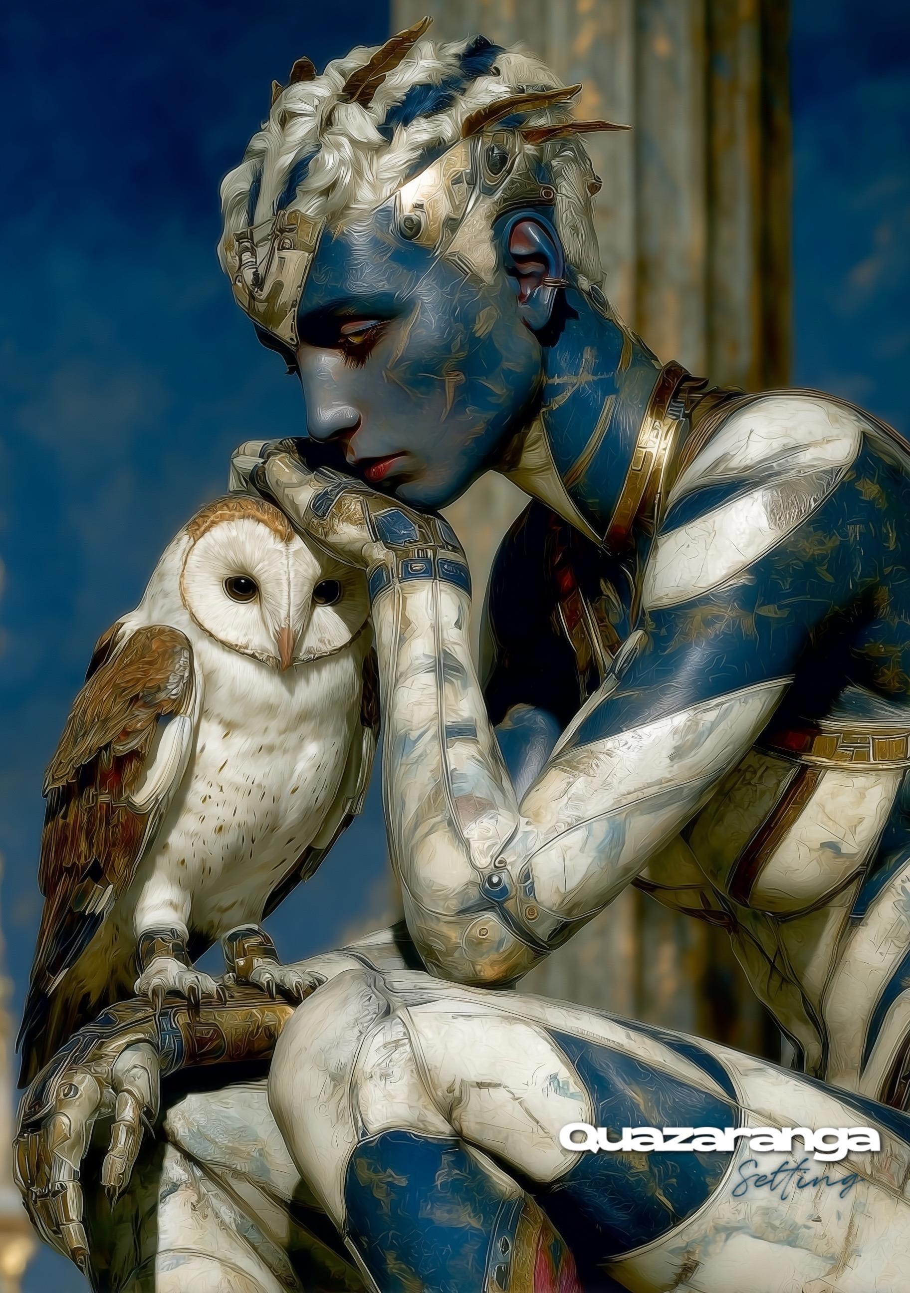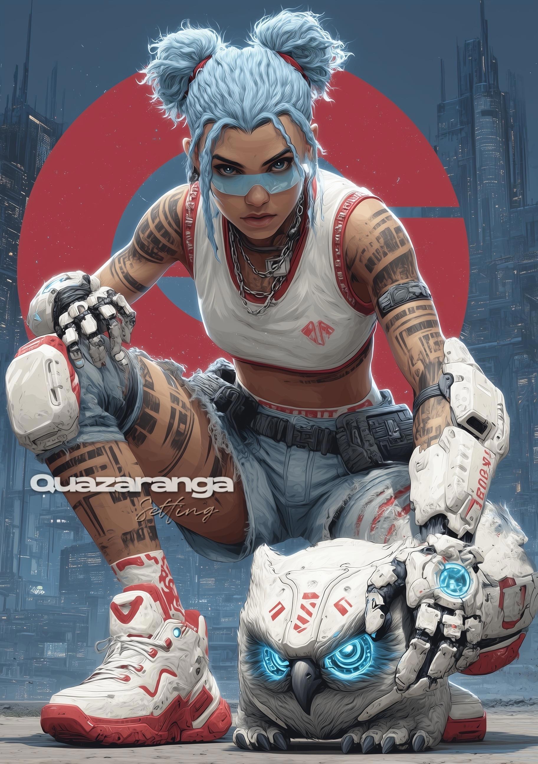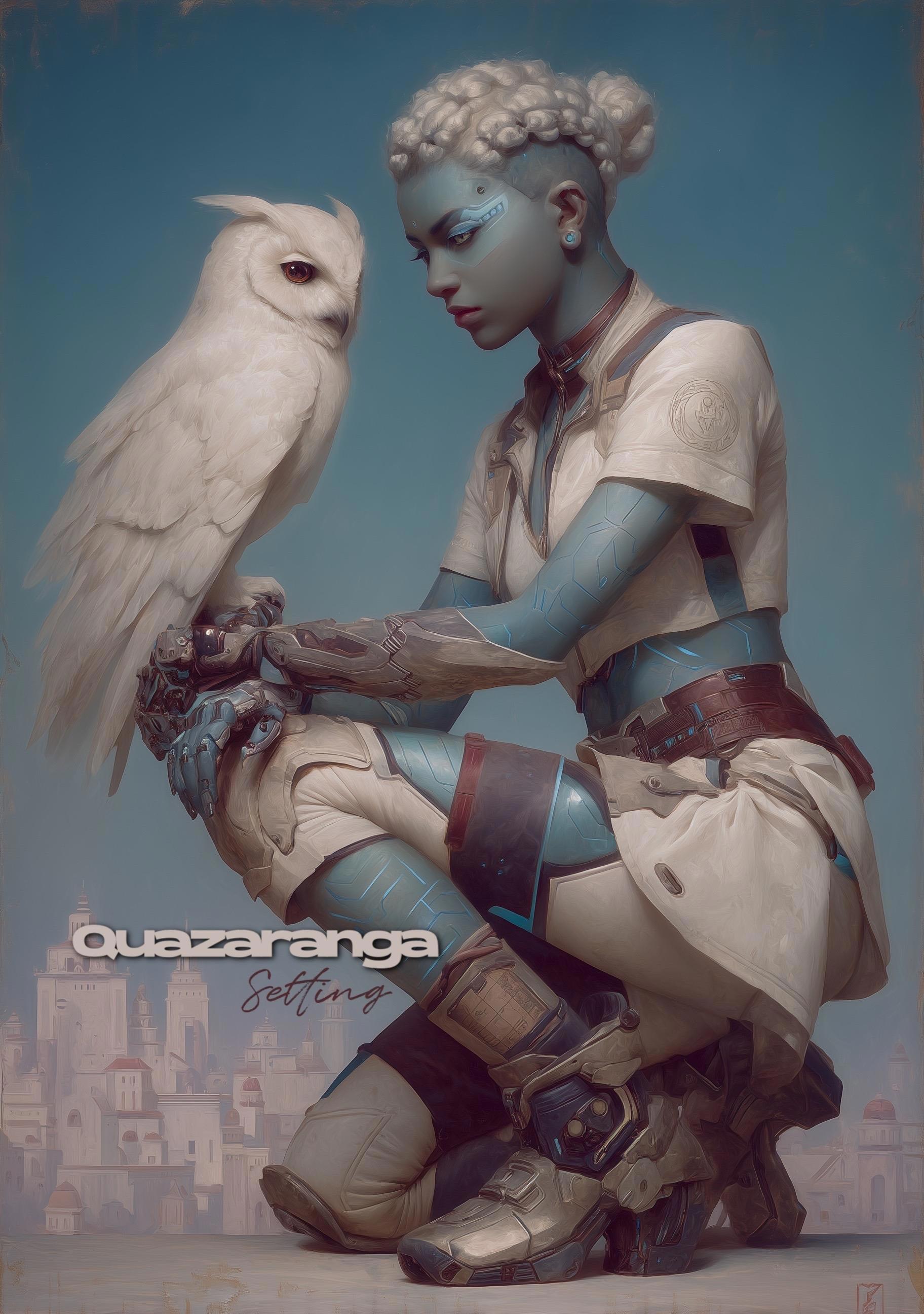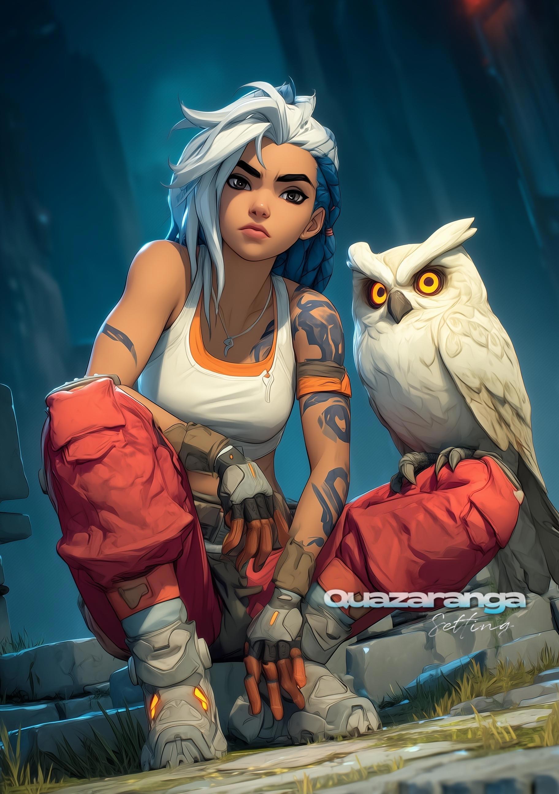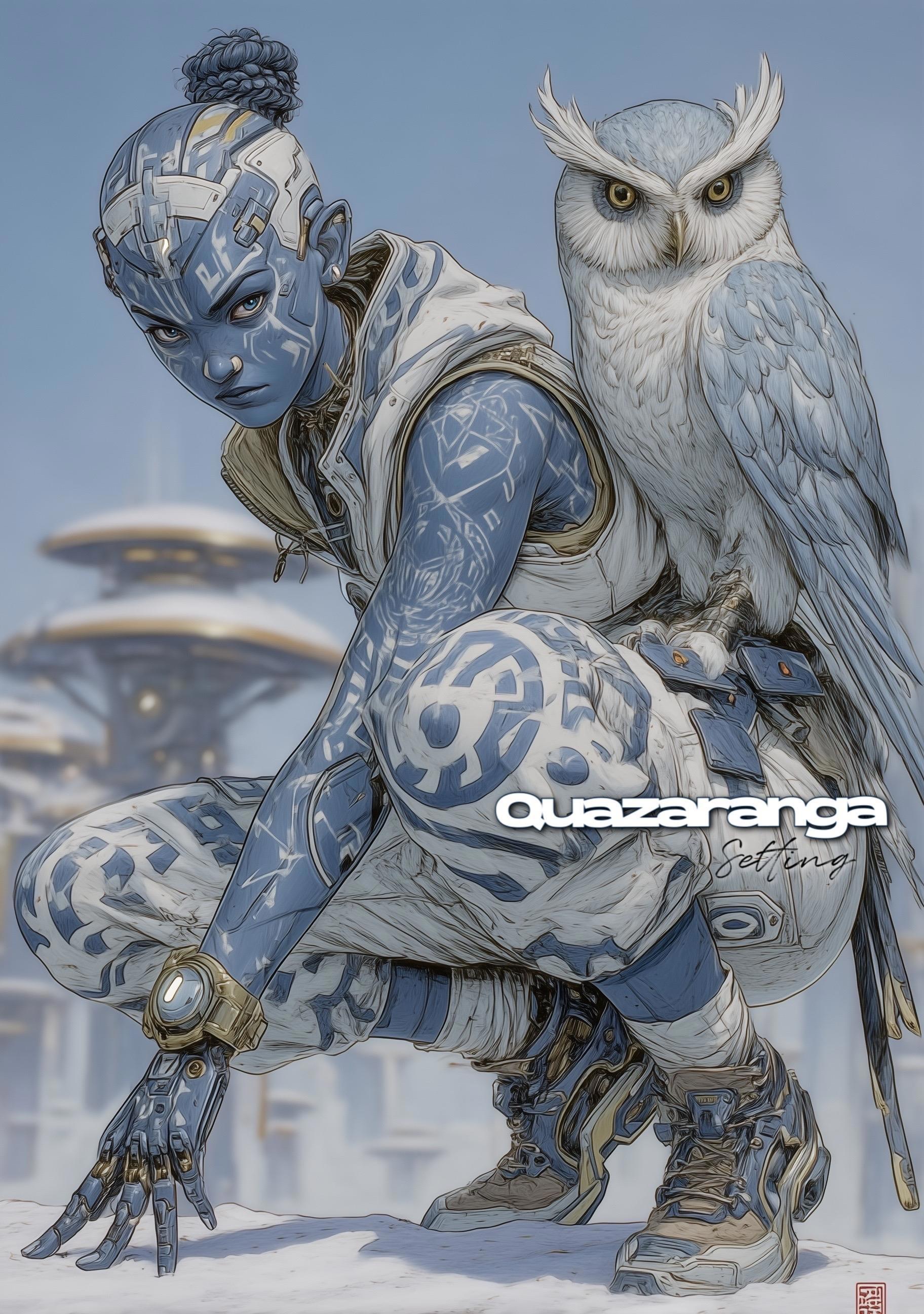 На картинке девочка нейрохакер с фамильяром совой. По логике, фамильяр — роботизированный, что не сильно заметно, но поправимо…