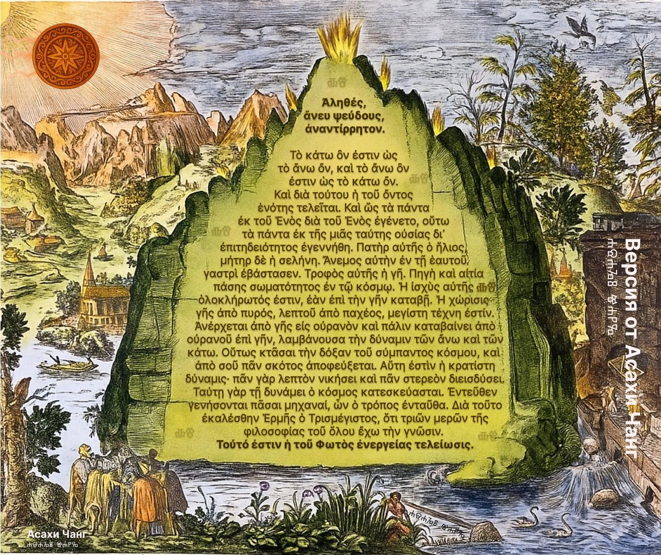 ️ Так называемые Изумрудные скрижали (Tabula Smaragdina) - это основной текст в греческом герметизме (магические практики), а также алхимии, которая взяла многое от своих греческих предшественников. А следовательно, это ещё и основной текст для центральной концепции алхимии, то есть по сути поиска секрета создания философского камня и реализации так называемого процесса "Великого делания" (лат. Magnum Opus, это алхимический термин).