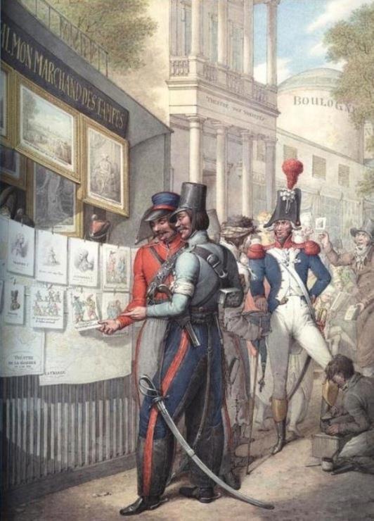 Большинство работ, о русских в Париже 25 акварелей принадлежат кисти Георга-Эммануэля Опица (1775-1841), который был очевидцем событий 1814 года.