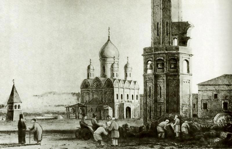 При подрыве колокольни Ивана Великого от неё отвалились все позднейшие пристройки