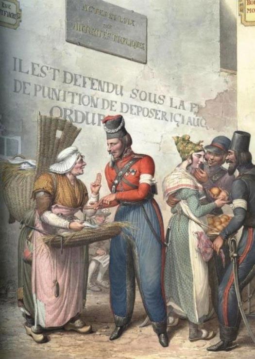 Казак спорит со старой парижанкой на углу улицы "De grammont". Хотя попробовал бы кто то из москвичей в 1812 году так поспорить с французским солдатом.