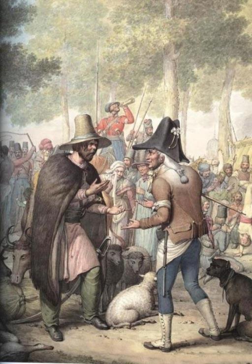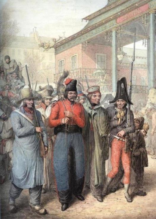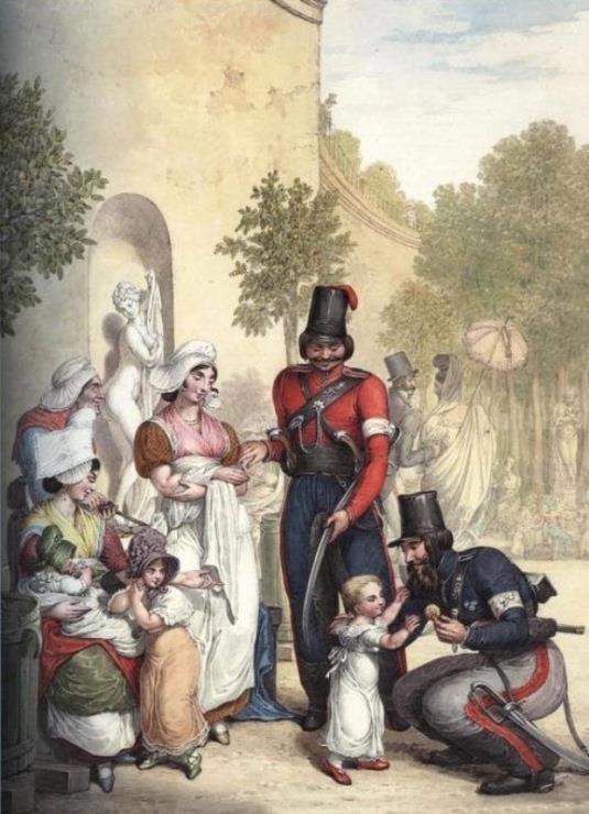 Георг-Эммануэль Опиц оказался в Париже до вступления в город русских войск. И свои работы о русских начал с изображения русских пленных.