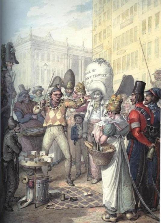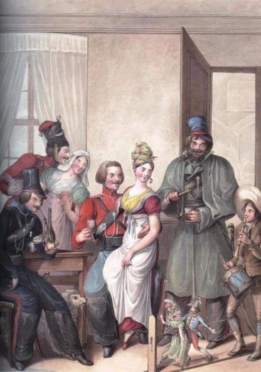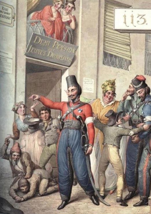 Георг-Эммануэль Опиц оказался в Париже случайно, буквально накануне вступления в город русских войск. Он быстро переориентировался с живописания парижских нравов на подтрунивающее описание нравов русских. А наши соотечественники давали тому немало поводов. Они купались с лошадьми в Сене, как писал современник, "взламывали паркеты, чтобы растапливать свои полевые кухни на Елисейских полях", по-медвежьи тискали ручки парижанок, объедались мороженым у Тортони на бульваре Итальянцев и наступали на ноги посетителям Пале-Рояля и Лувра.