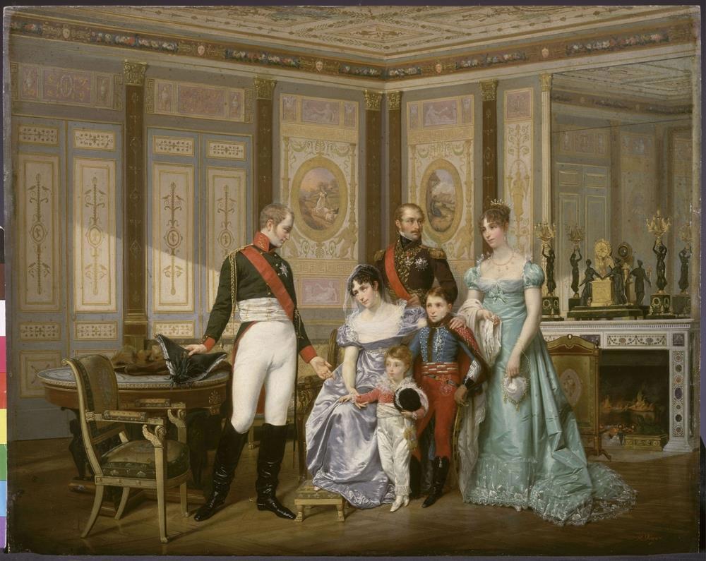 Императрица Жозефина представляет своих детей Эжена и Ортанс и двоих внуков императору Александру. Тот сын Эжена Богарне, что войдёт в русский императорский дом ещё не родился.